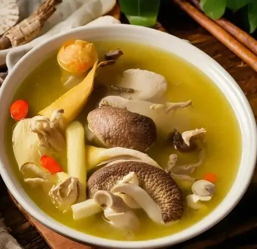 蘑菇炖鸡要现煲,山里鲜味自己上桌。