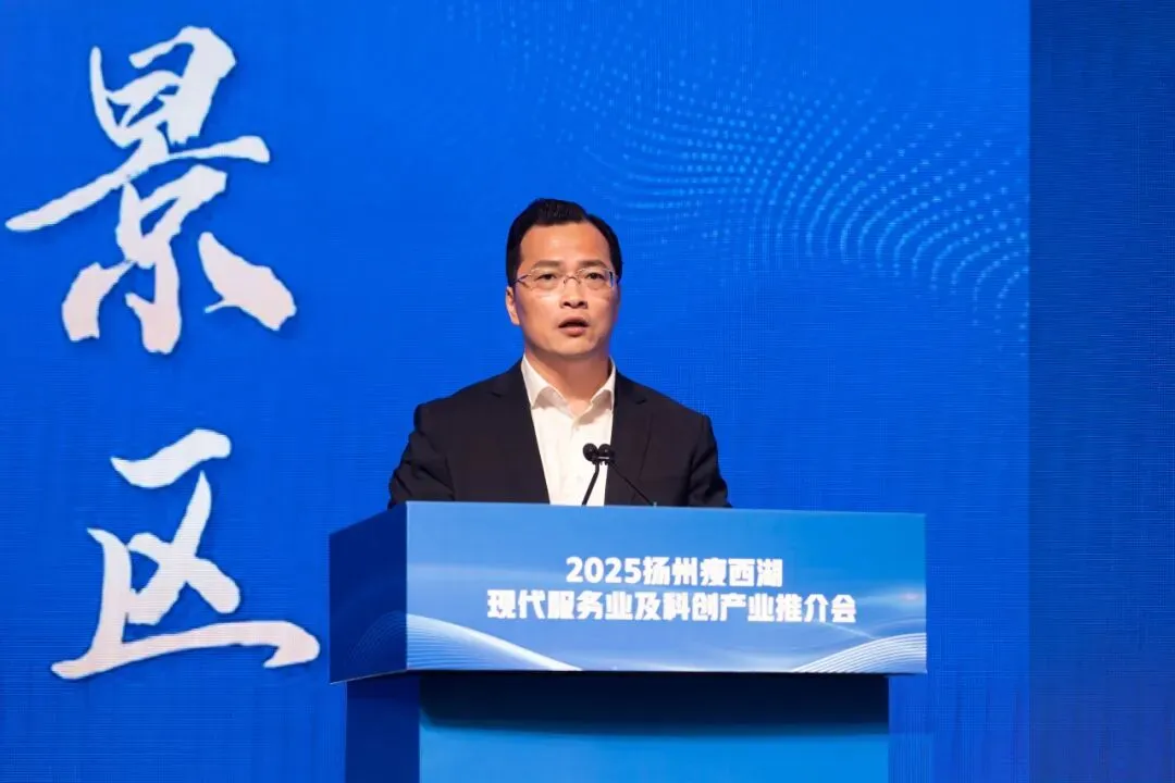 刘卫国在作景区产业推介时表示,蜀冈—瘦西湖风景名胜区是“好地方”扬州对外展示的“第一窗口”,有着“好地方”精致秀美的好基因、创新创业的好基础、海纳百川的好传统。走进景区,可以感受绵延千年的古韵风华,全区目前已拥有5A级景区1个、4A级景区7个,省级旅游度假区1个,园林文化、运河文化、非遗文化、美食文化交相辉映;走进景区,可以感受产业发展的强劲动力,全区锚定扬州产业科创名城建设主航道,重点发展低能耗、高附加值的现代服务业,大力培育以文旅休闲为特色,智慧科创、人工智能、大金融、大健康为主导,总部经济、数字经济、园区经济、平台经济、会展经济为引领的“145”特色现代产业体系,积蓄着高质量发展的澎湃动力;走进景区,可以感受开放包容的创新氛围,全区深入实施“创新引领、开放崛起”的发展战略,高起点规划布局瘦西湖路创新带,引入服务型机器人研发应用集成中心、北大科技园等科创平台,优化实施人才新政“十六项举措”,让创新的源泉充分涌流、人才的活力竞相迸发;走进景区,可以感受近悦远来的营商环境,全区牢固树立“人人都是营商环境、个个都是景区形象”的理念,全面推行“一窗通办、帮办代办”服务,努力让企业在景区发展更舒心、成长更暖心、经营更安心。近年来,景区坚持以科技创新为引领,加快推进瘦西湖路科创带建设,聚焦人工智能、智慧科创、航空培训、产业基金等细分领域新赛道,狠抓科技招商工作。希望通过本次推介会,让更多投资者、企业家了解景区产业基础和资源优势,吸引更多产业链上下游企业来景区投资兴业,力争在“十五五”期间,汇集科创企业100家、集聚科创人才1000人,产业规模升至100亿元,奋力打造扬州科创产业发展的景区新高地。