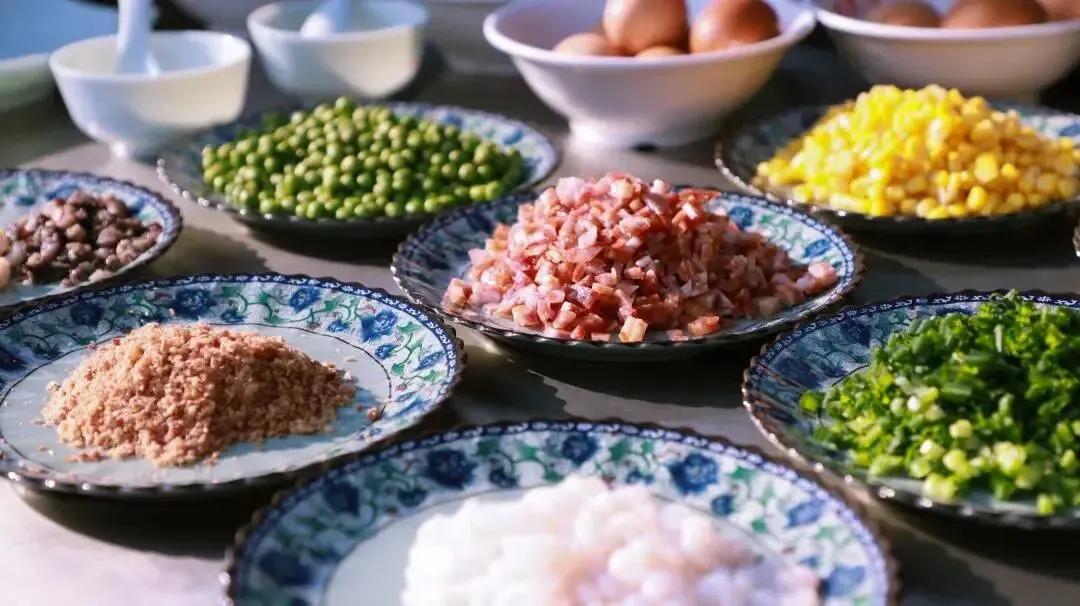 主 食:八珍炒饭(牛粒、鲜贝、火腿末、蜜豆、蟹油、紫姜芽、葱、蛋)