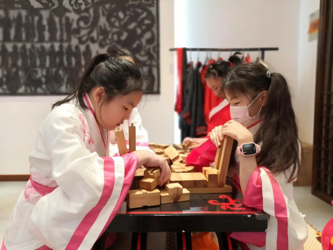 第一代广陵王刘胥夫妇的陵墓中使用了一项高超的木工工艺——榫卯结构,不用一根钉子,连接完整的木椁墓,展现了汉代木工工艺的高超水平。在景区,也可以亲手体验到榫卯的拼接,感受古代劳动人民的无双智慧。