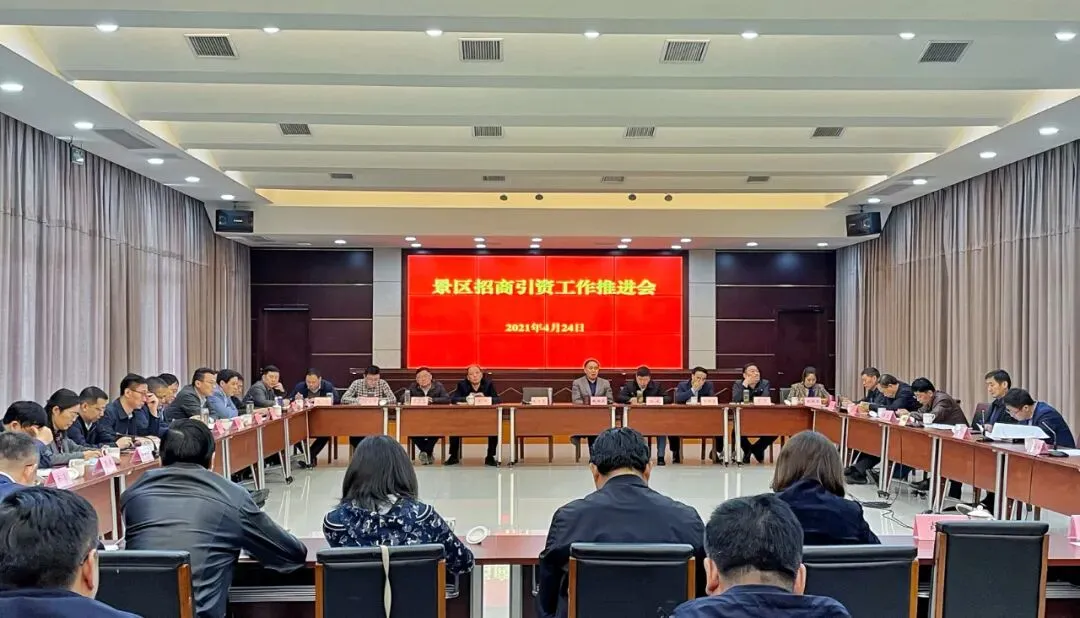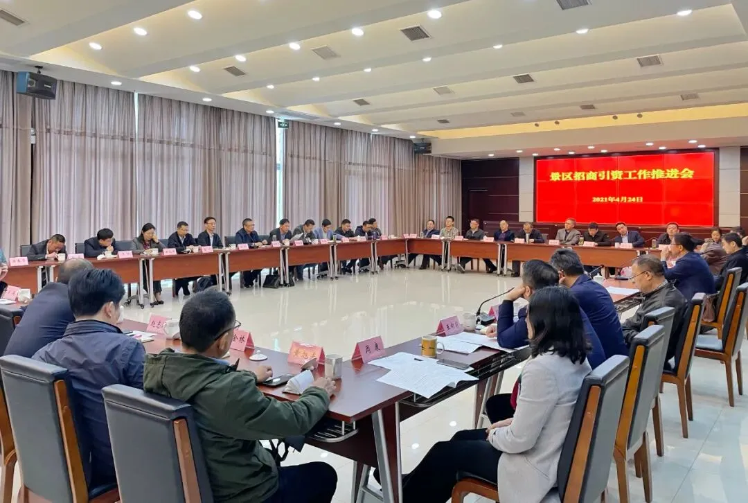 4月24日,景区召开招商引资工作推进会,党工委书记汤卫华,党工委副书记、管委会主任胡晓峰出席会议。区领导陆志林、周兆洪、郭坚、顾永良、陈福新、王勤刚、吴文志参会。