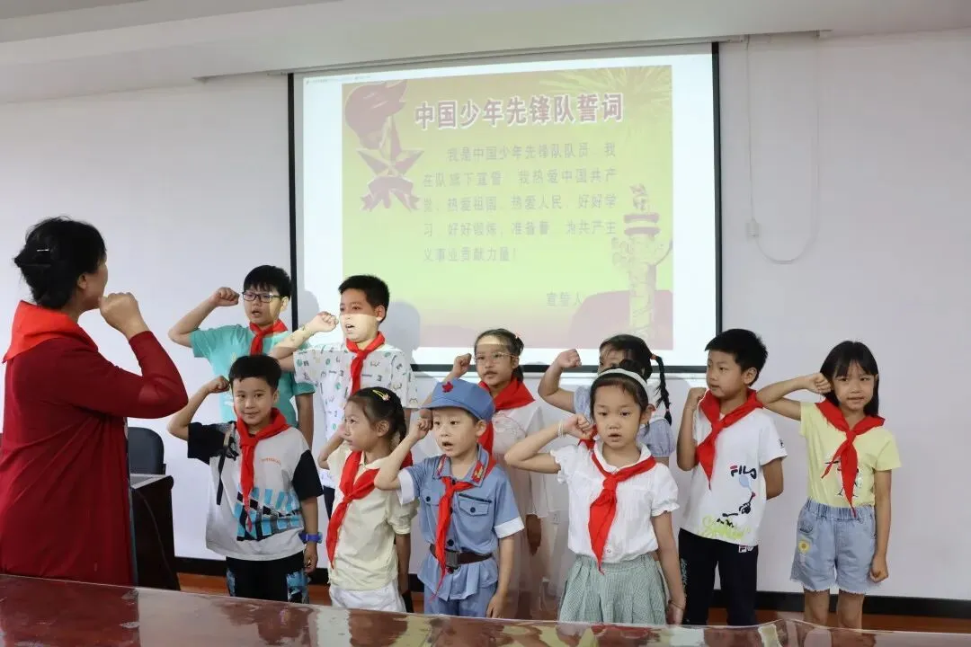 活动现场,老红军后人、优秀共产党员、“兵妈妈”服务队党支部书记蒋玲玲给孩子们讲述革命先辈们的峥嵘岁月,并带领孩子们一起重温少先队誓词,让孩子们牢记作为共产主义接班人的光荣使命。