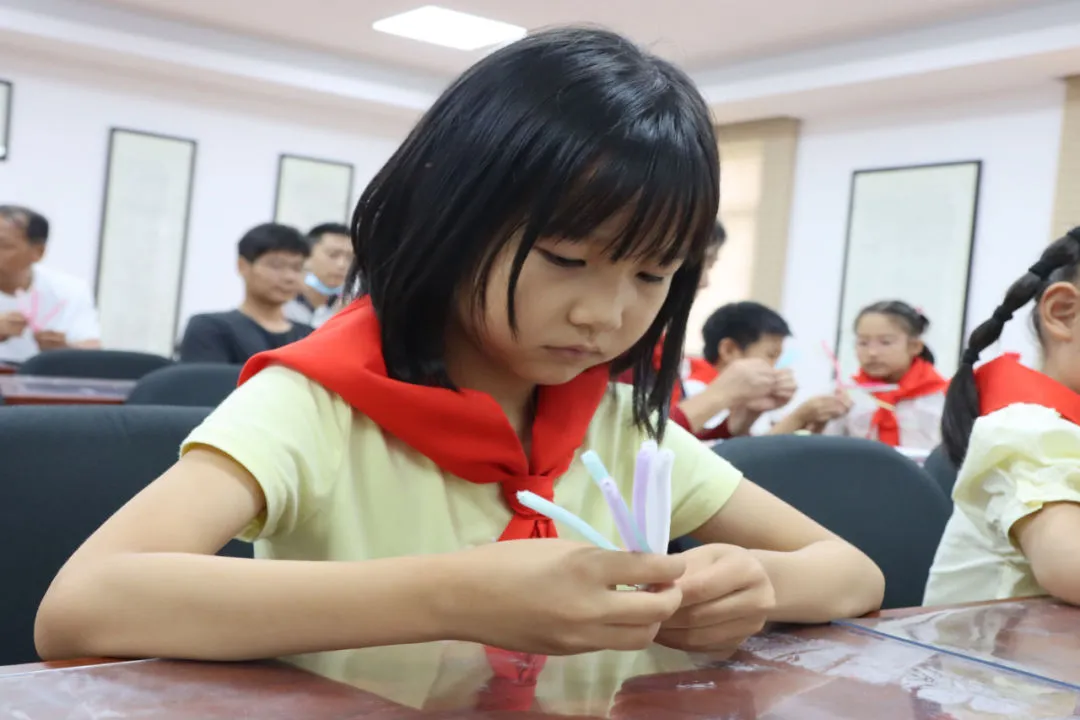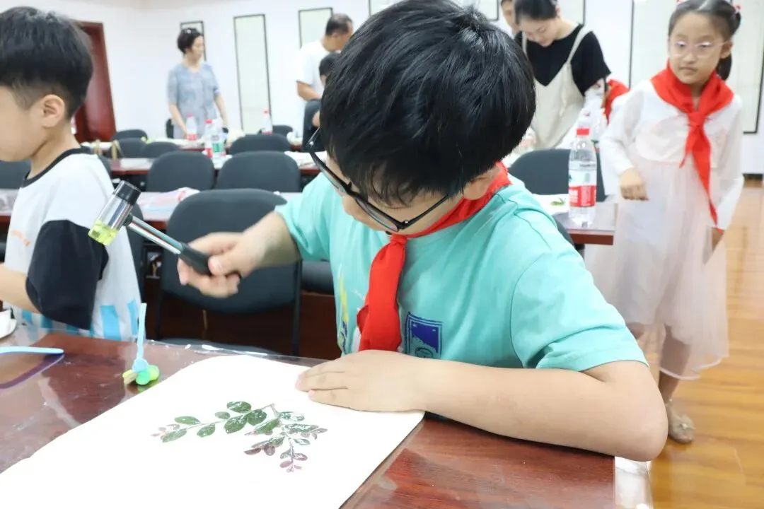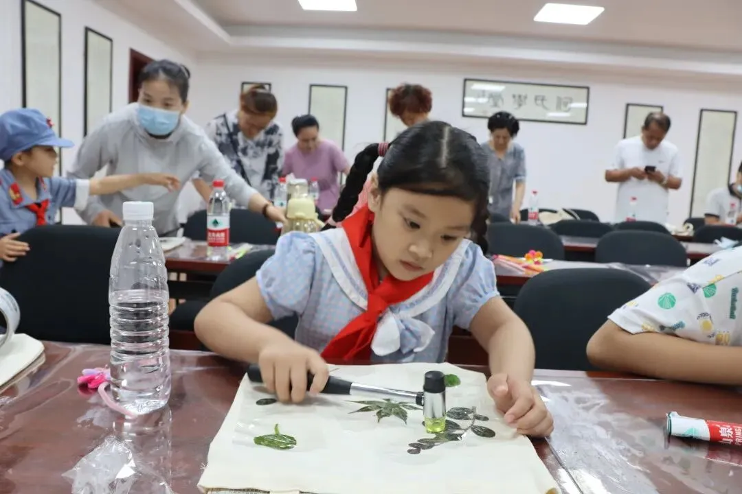 孩子们在何园工作人员的指导下,进行非遗项目绒花及拓染制作。他们用灵巧的双手,在“八一”建军节到来之际,用实际行动表达对祖国的热爱和对军人的爱戴。