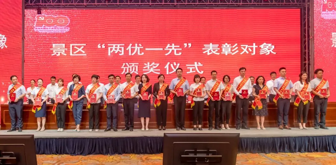 景区党工委副书记刘马根宣读《关于表彰全区优秀共产党员、优秀党务工作者和先进基层党组织的决定》,对近年来在景区建设发展中涌现出的先进集体和优秀个人进行了表彰。