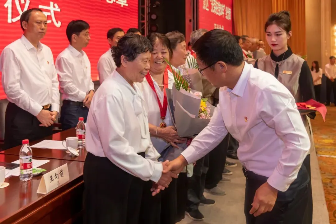 汤卫华向老党员代表颁发“光荣在党50年”纪念章