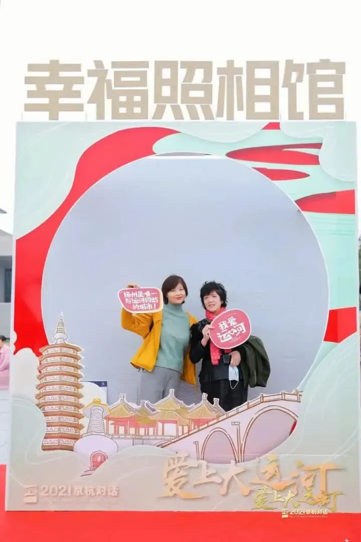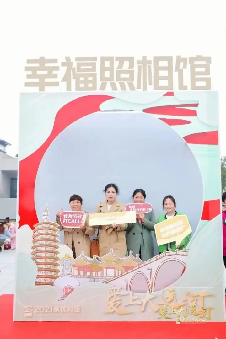 活动现场,扬州广电报网传媒、扬州景区融媒体中心,携自拍框亮相现场为活动助力,推动运河城市交流。网友们也纷纷站在幸福照相馆里和自拍框合影留念。