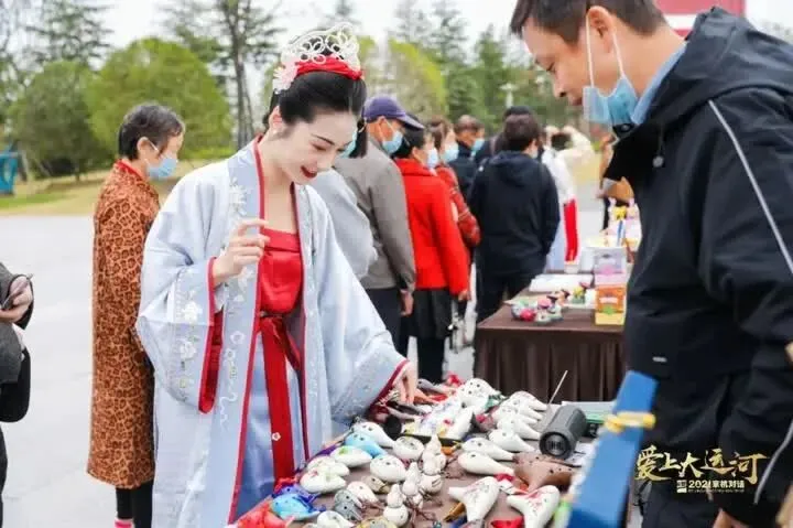杭州电视台主持人宛诗在现场体验了很多非遗的互动项目,她说跟着走了几个大运河沿线城市了,扬州给她的感觉是年轻、有活力,整个城市很精致。