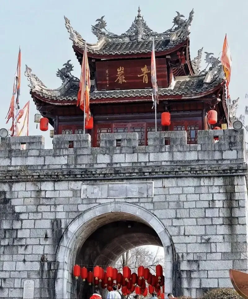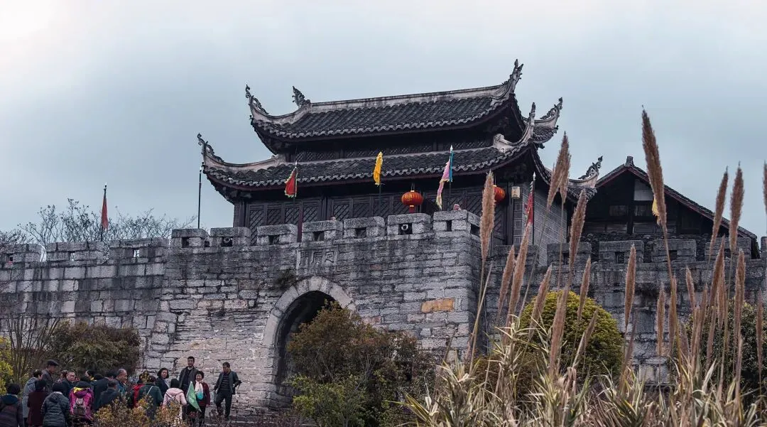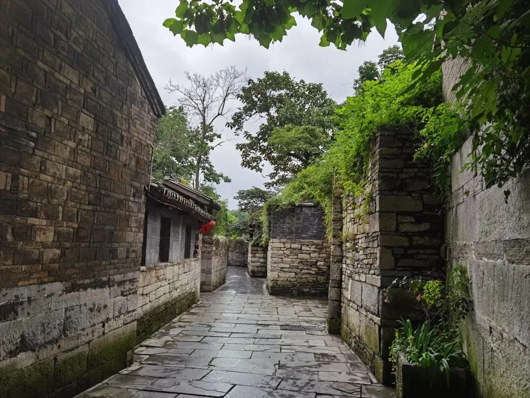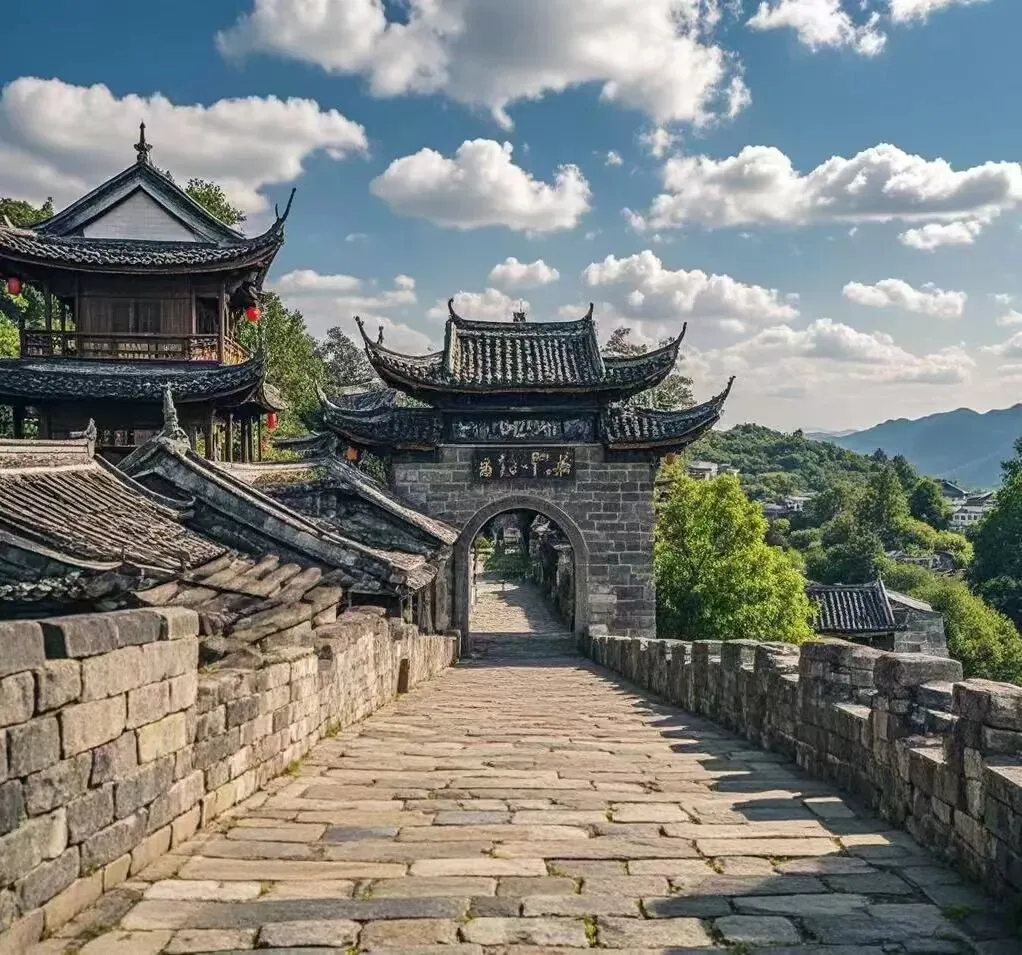 而街巷、围墙也是用石铺砌和堆砌的,房屋像从山石中生长出来的。整个古镇依山就势,青瓦石墙、石板小路、石砌拱门,处处透露着山地兵城的硬朗与古朴。