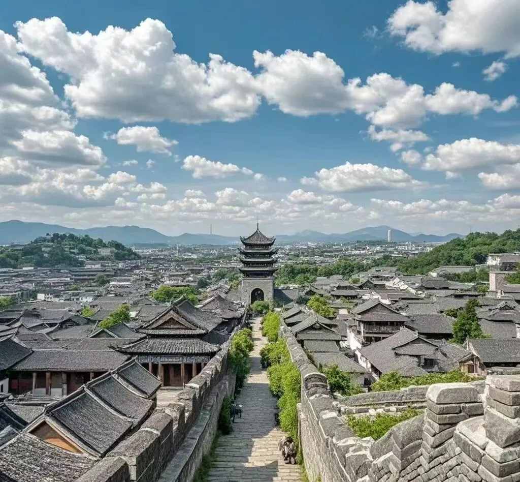 如今登上定广门城楼,向南望去,可以俯瞰古镇外青灰色的田野和村庄;向北回望,整个青岩古镇尽收眼底——层层叠叠的青瓦屋顶、蜿蜒交错的石板街巷、飞角重檐的寺庙楼阁,视野豁然开朗,古镇一切美景尽收眼底。
