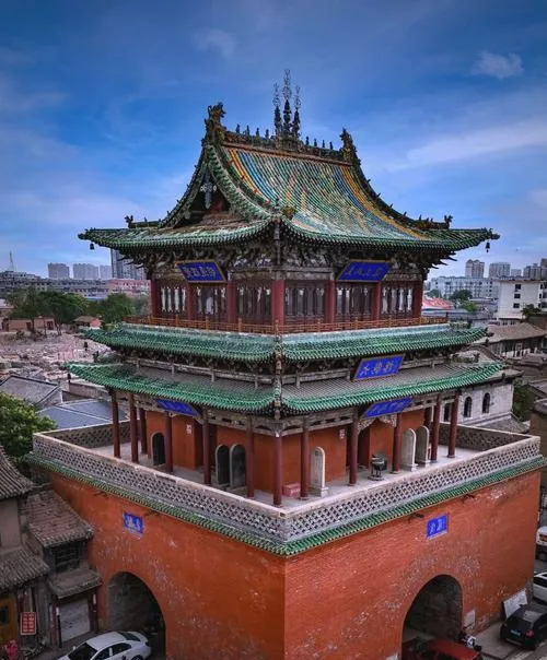 太谷的鼓楼立在城中心,很多县城都有鼓楼,但太谷这座不太一样,它不是单纯的报时建筑,更像是这座城市的精神锚点。你绕着鼓楼走一圈,会发现周围的街道都是围着它展开的,整个县城的空间逻辑,其实都在围绕这座楼运转。