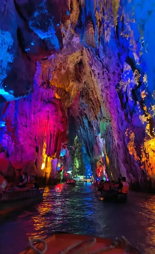龙宫跟黄果树离得不远,但性质完全不一样,黄果树是把力量摆在你面前让你震撼,龙宫是把美藏在地底下让你去发现。你坐船进溶洞,两边全是喀斯特地貌形成的钟乳石,水面倒影把整个空间拉长一倍,这种美不是冲击性的,是渗透式的,等你出洞回过神来才发现刚才那二十分钟脑子是空的,就专注在看那些石头和水怎么配合。