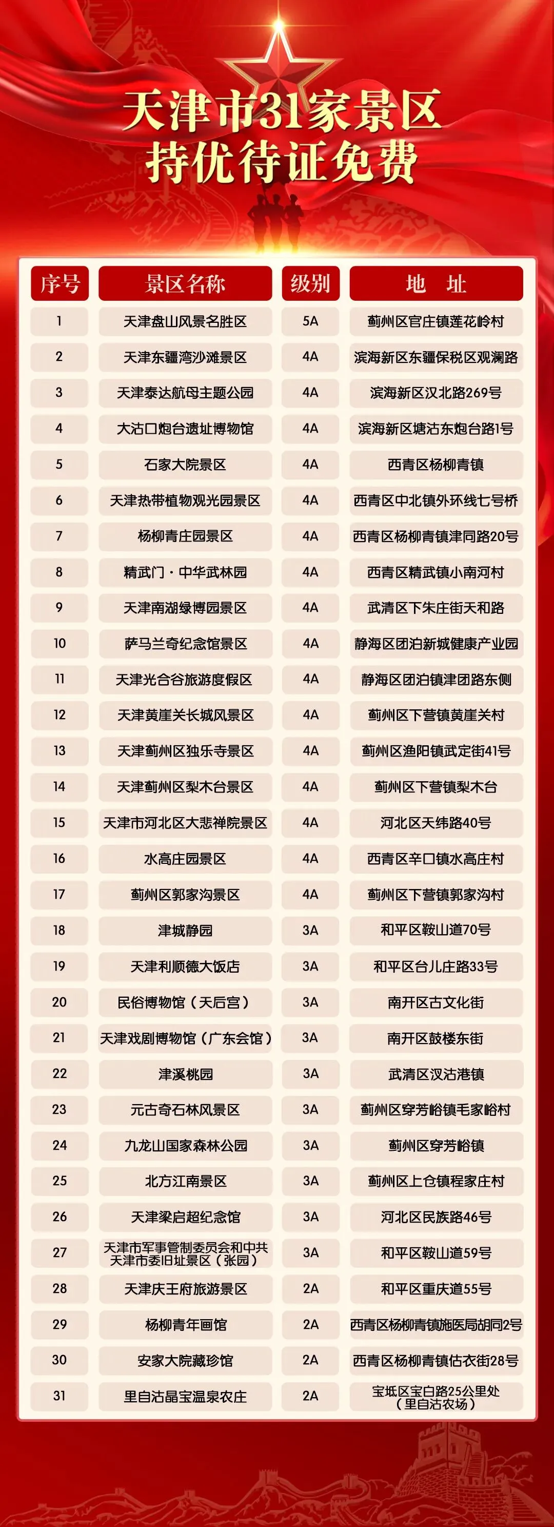 【优抚优待信息】天津市31家景区持优待证免费!