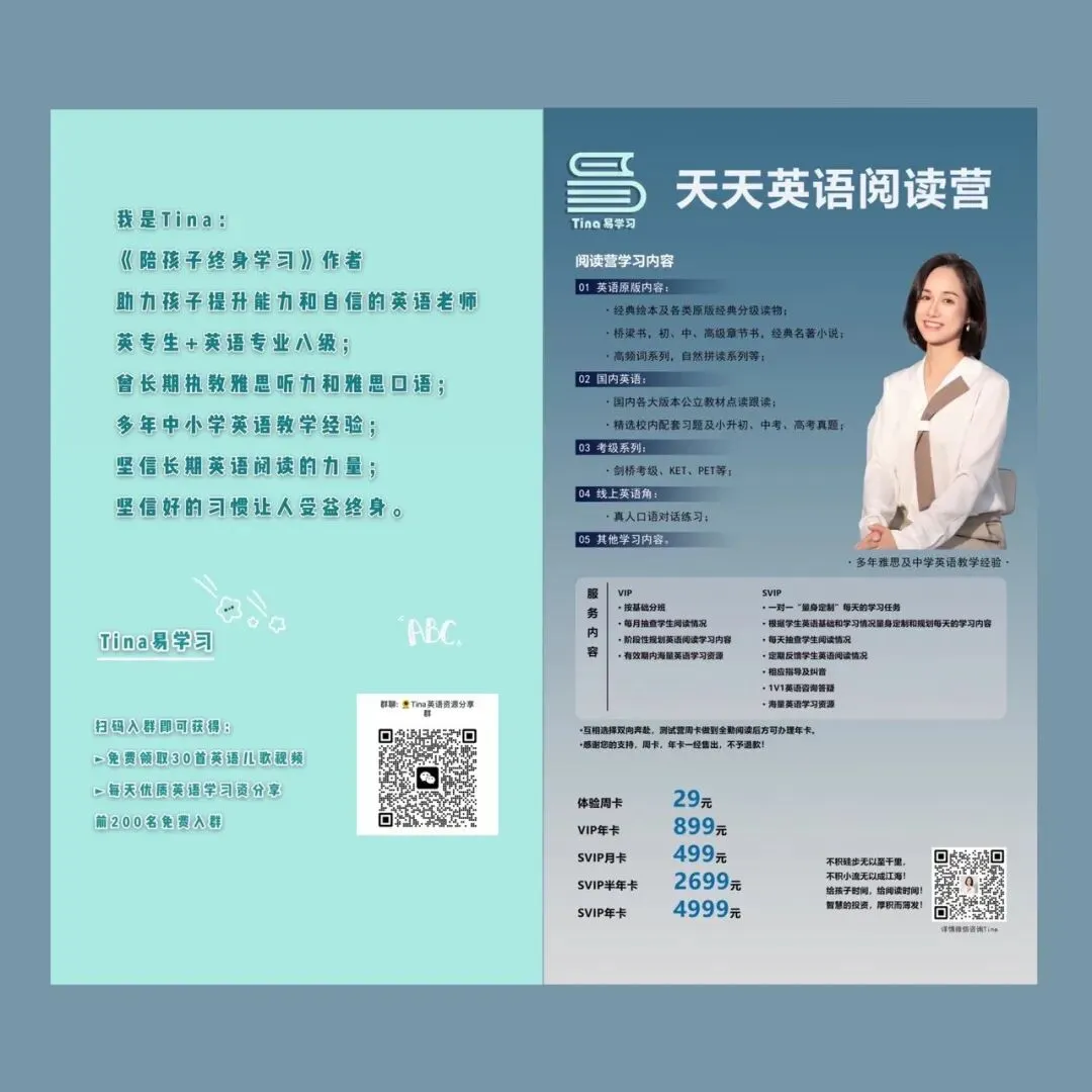 欢迎加入Tina英语资源分享群,每天分享优质英语学习资源~