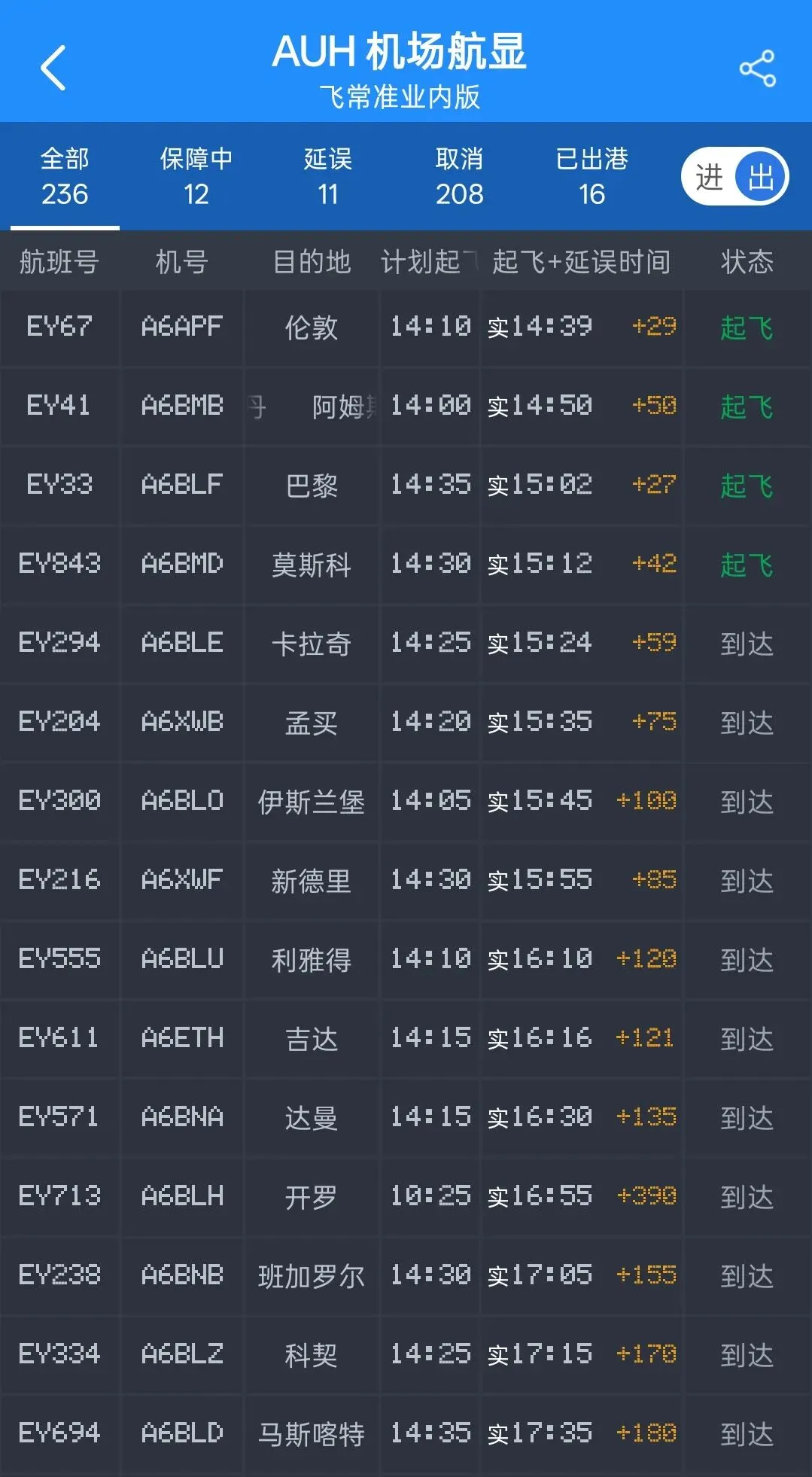 记者发现,3月2日下午2个多小时内,该航司已经从阿布扎比机场密集起飞了15架航班(注:在以上视频发布后又飞走1架,总数增至15架),分别前往伦敦、巴黎、阿姆斯特丹、莫斯科、利雅得、孟买、埃及等目的地。