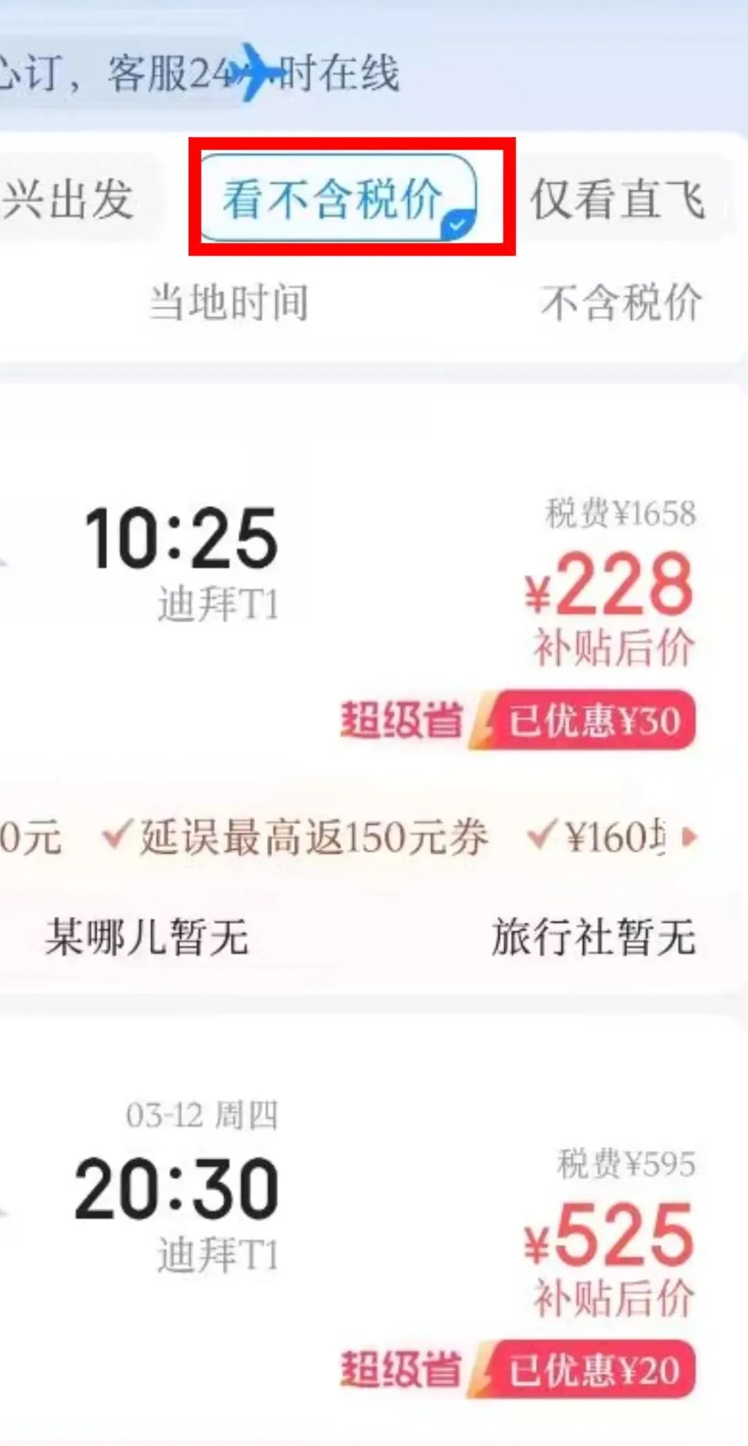 ▶北京飞迪拜只需228元的网帖引关注,记者实测发现未含税费,直飞含税价三千左右,平台会弹窗安全提醒。