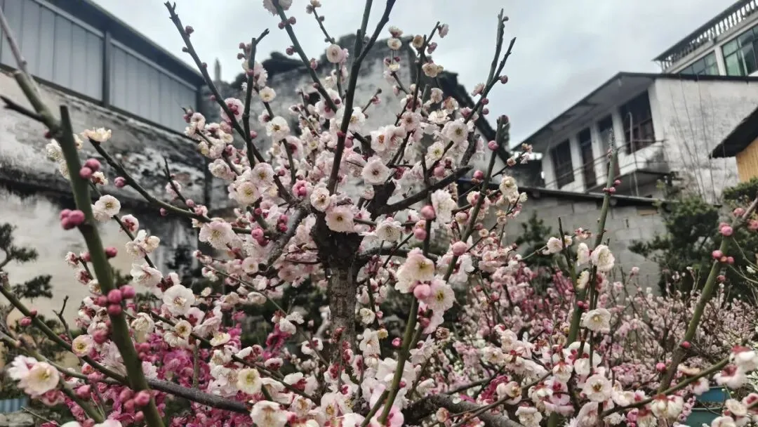 第一站就去了卖花渔村,村里山上种了好多梅花。可惜我们去的有些晚了,在加上前一天还下雨了,所以去的时候有很多花已经谢了,没有网上的照片那么美了。但是还好还能看到一些残花,不至于白跑一趟。山脚下是卖花渔村的住户,有很多梅花的盆景,每家每户家里基本都有梅花盆景,院子里也都装饰的蛮好看的。