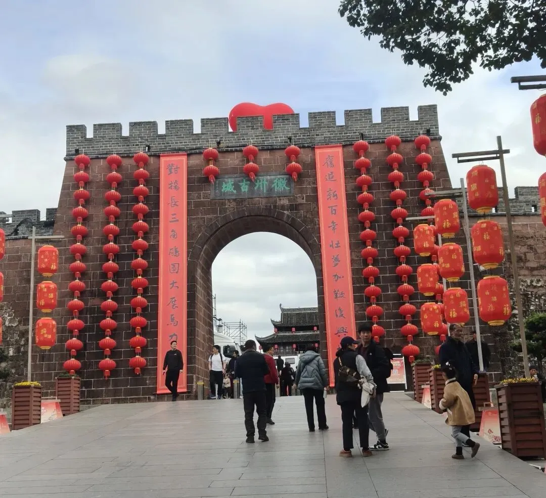逛完卖花渔村,已经快中午了。徽州古城就在附近,说是要带我去逛逛,我以为会带我进去逛逛,谁知就是在门口拍了一张照片。哎,害我激动半天。徽州古城与四川阆中、云南丽江、山西平遥并列为中国保存最完好的四大古城。可惜了,老公之前逛过,说里面和普通的古城没啥区别,那我就不逛了。