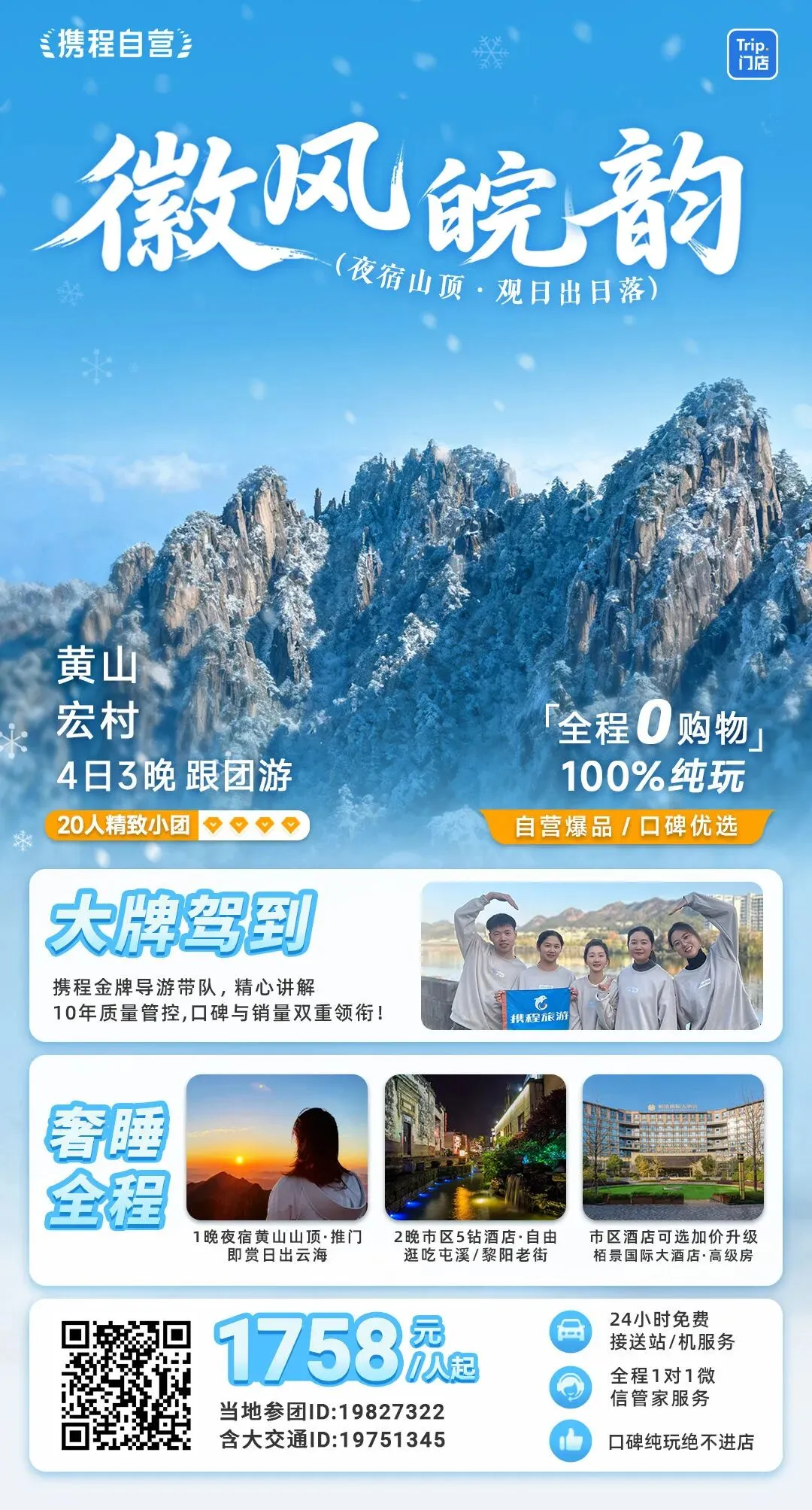 #【携程自营・冬日典藏】双世遗+双古城|黄山雪韵揽冬色・徽州雅韵醉皖南