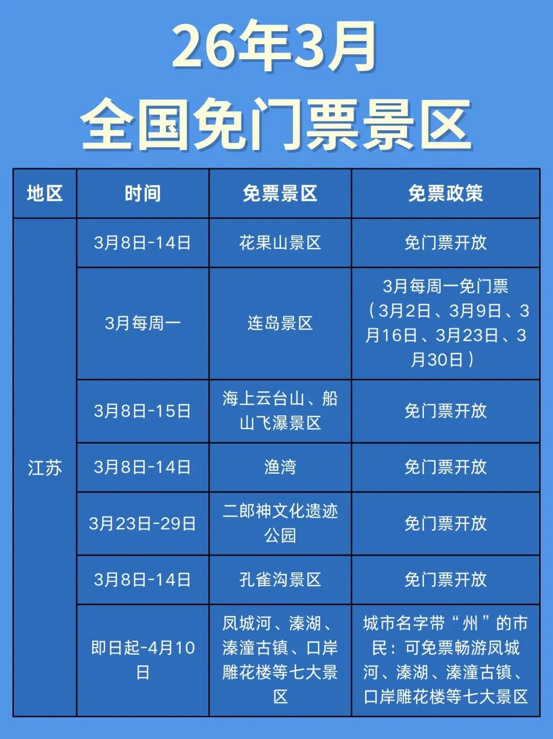 3月!全国这么多景区门票居然都免费了!收藏