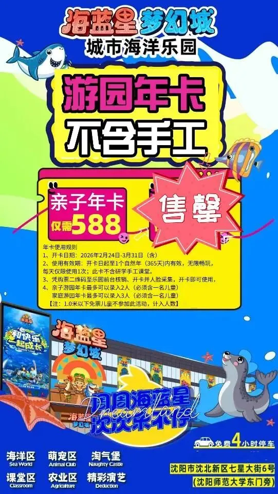 2026三月沈阳周边景区游乐场汇总(二)海蓝星年卡亲子588元 家庭788元