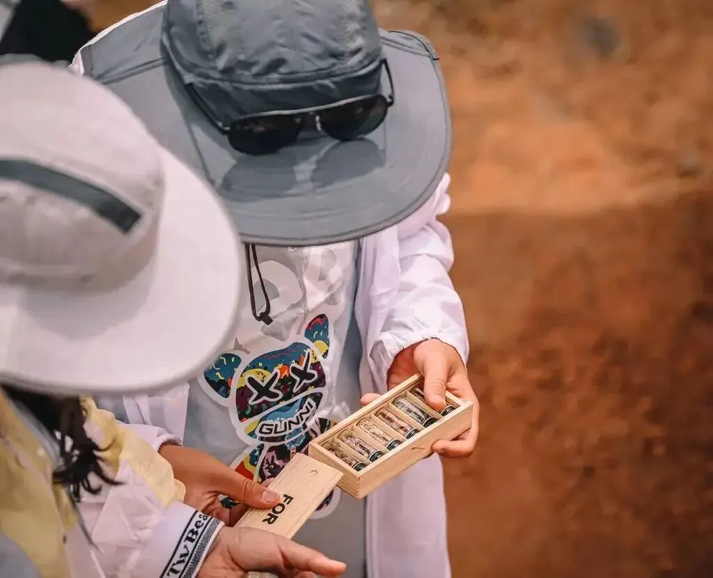 看过博物馆内地质的神奇,再亲临科研现场,当一回地质科学家,运用专业工具采集丹霞土壤。