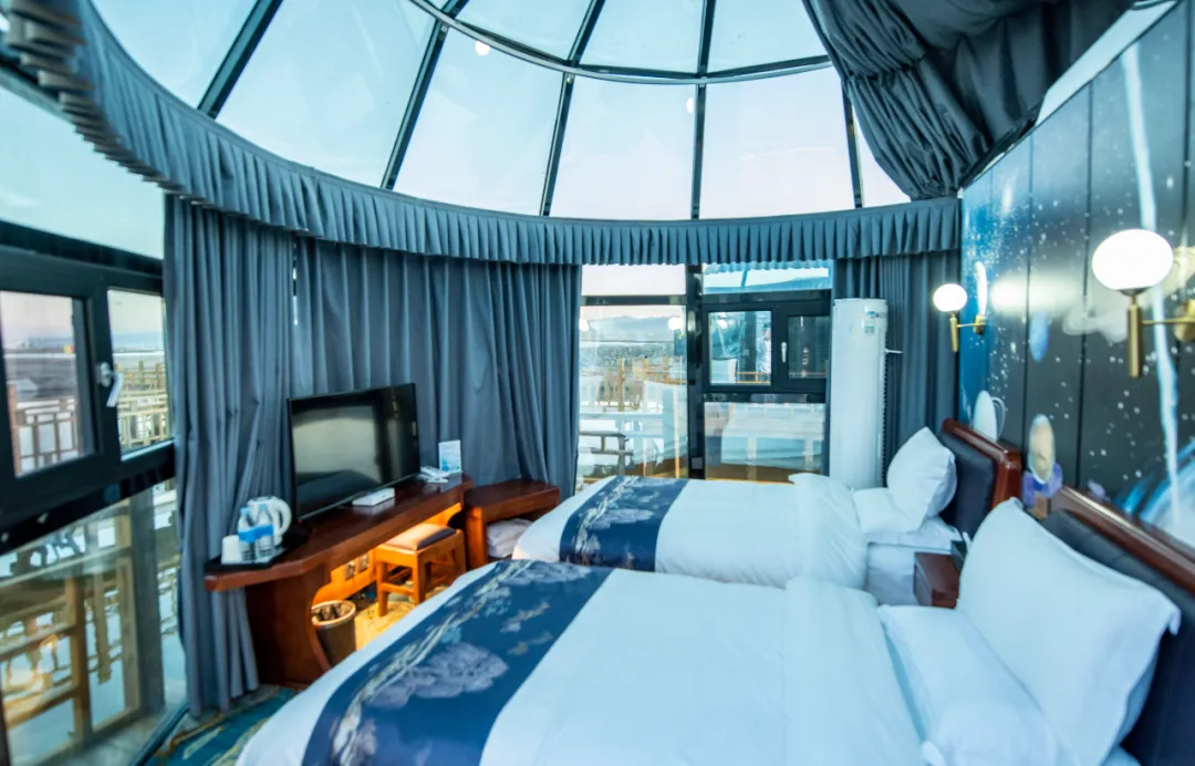 占尽地理位置优势,网红感十足的梦幻水上星空屋,酒店对客房的装饰十分考究,每间设施齐全的客房都配备有空调。