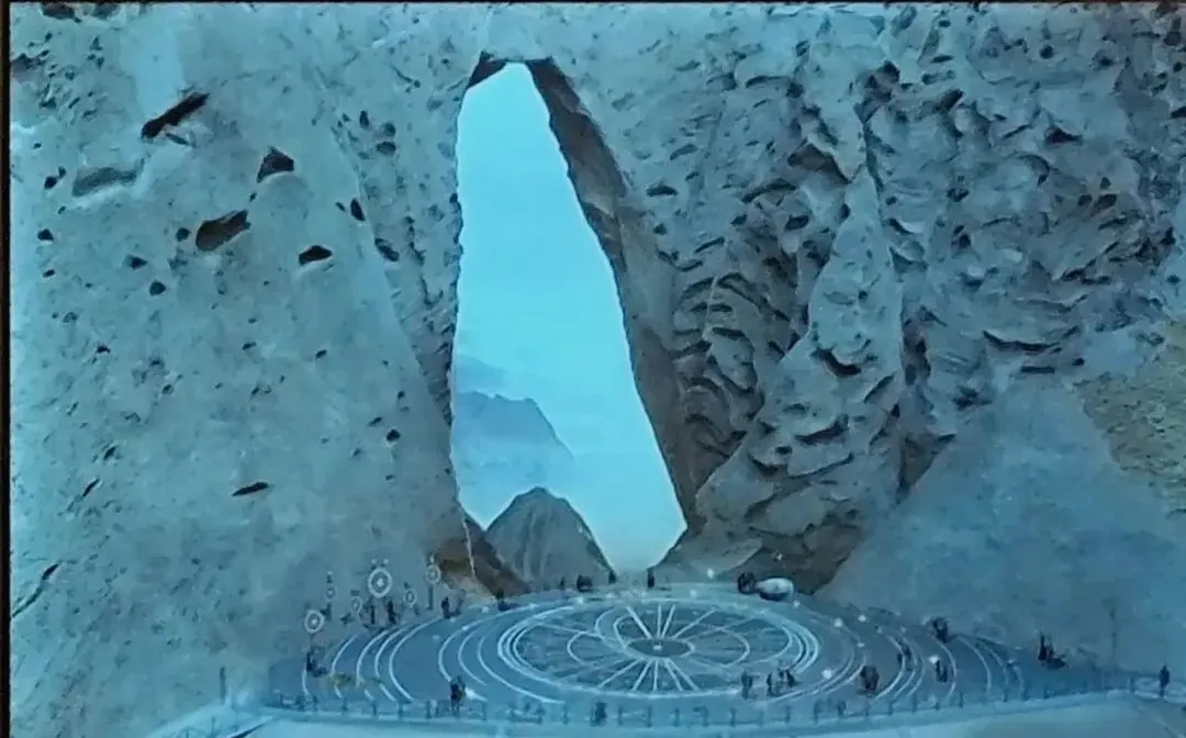被美国探险杂志确定为世界上20个最值得探险的景区之一。这座“天门”屹立在帕米尔高原上,呈“门”字形,宽约100米,高500余米,右壁上有石穴,形状像蜂巢,左壁表面像壁画。传说很多高人就是跨过这座天门,一步登天觐见天尊的。