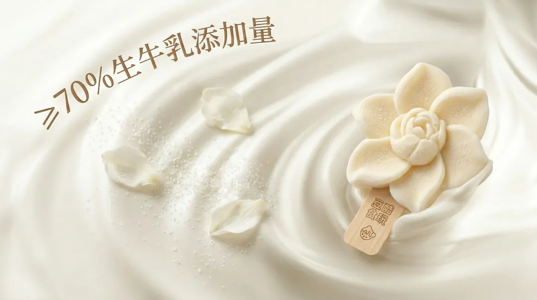 为什么很多景区的文创雪糕卖不动?因为在审美红利时代, “差不多”的产品已经无法让游客产生消费冲动了。 豆酷食玩深谙 “出片率 = 转化率” 的逻辑。我们通过对文化的深度转译,将花卉神韵 1:1 还原到产品细节中,让每一支雪糕都自带“爆款”基因。 从早春的樱花到初夏的荷花,豆酷食玩为您定格每一个时令的专属美感: 02 品质为王:70%含奶量,不加一滴水