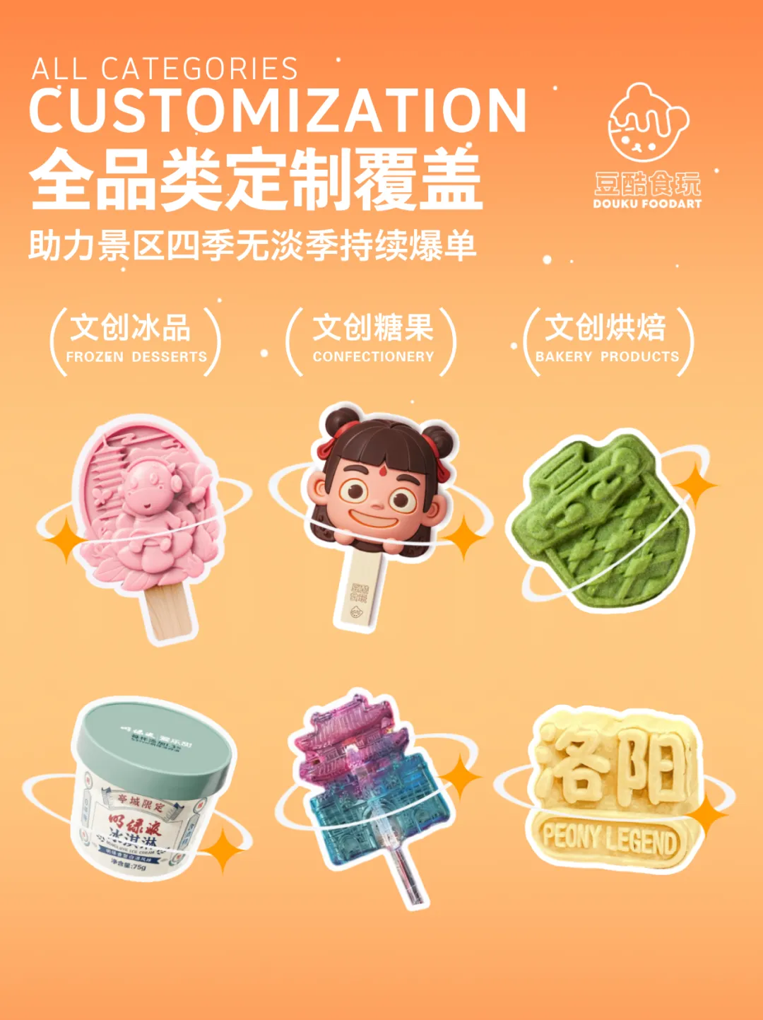 文创雪糕的竞争,本质上是“档期”的竞争。生产需要排产,设计-开模-物流需要周期。 如果您正在筹备: 现在下单,刚好赶上花期盛放与假期高峰。您负责“貌美如花”,豆酷食玩负责让您的景区“如火如荼”。 豆酷食玩 · 文创食品一站式解决方案 文创冰品 | 文创烘焙 | 文创糖果 | 管家一站式服务