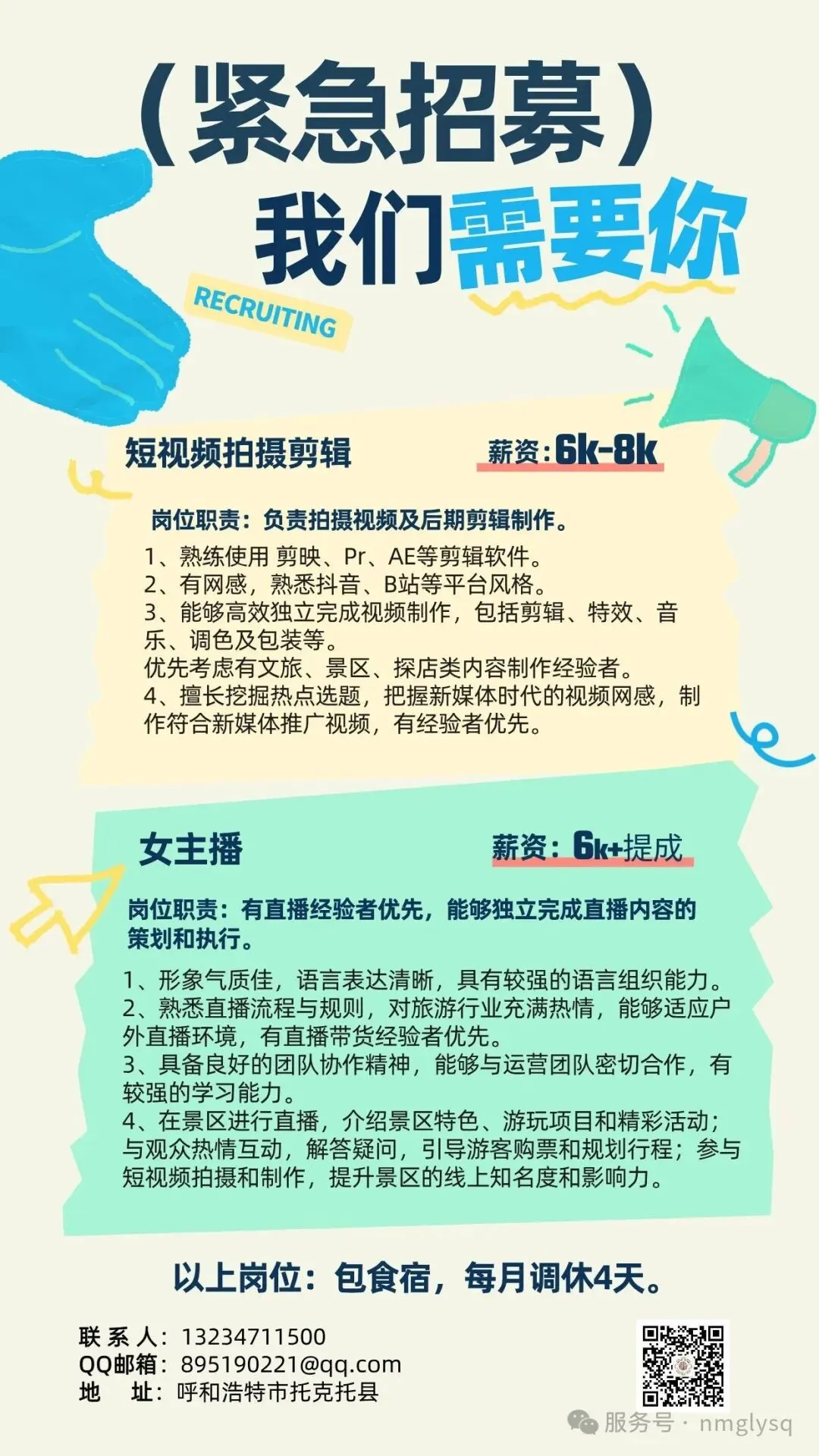 呼和浩特神泉旅游景区女主播点击下方↓“首府人才信息”关注 发送"招聘"查看更多招聘岗位