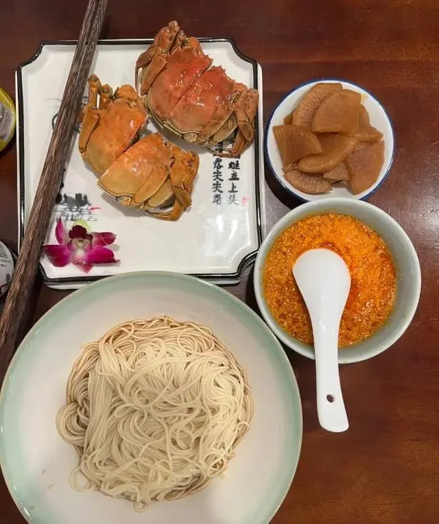 蟹黄面料多到溢出,面条裹满金黄蟹油,临河位拍照巨出片。