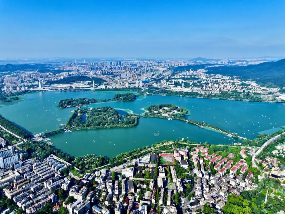 莫愁湖公园是南京著名的古典园林,湖面宽阔,湖水清澈,周围的亭台楼阁、绿树成荫,形成了“金陵第一名湖”的独特景观。