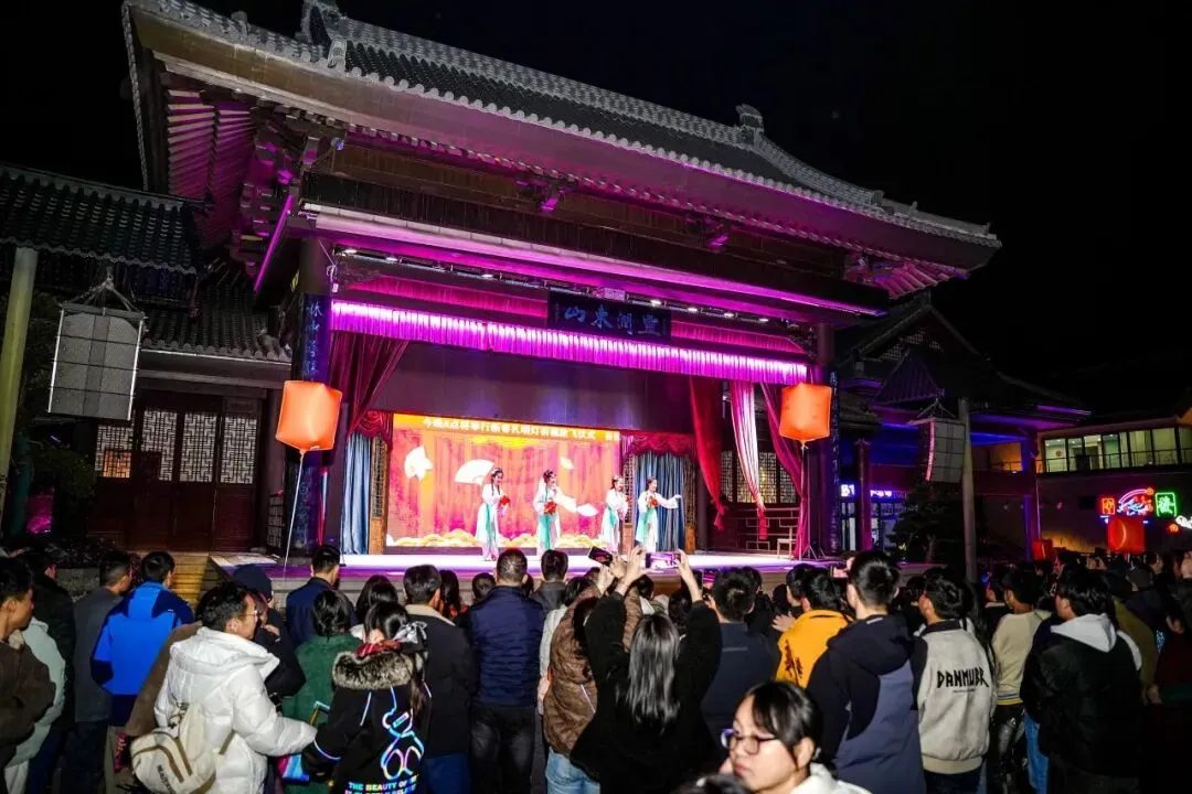 3月3日,元宵佳节,黄梅东山问梅村举办了鱼灯巡游、孔明灯祈福、黄梅戏联唱、无人机焰火秀等一系列文化演艺活动,节目现场人潮涌动、欢声不断。