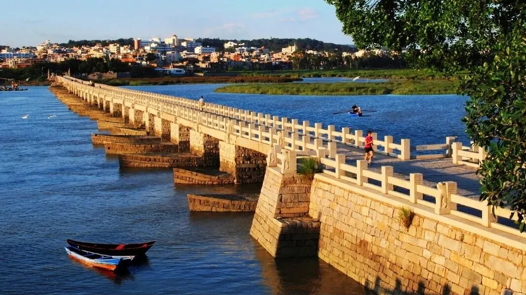 潮起潮落间,这座宋元遗珍静静横跨碧波,作为我国现存最早的跨海梁式大石桥,它不仅是“泉州:宋元中国的世界海洋商贸中心” 的璀璨印记,更是时光雕琢的建筑诗篇。桥下八千亩红树林随风摇曳,勾勒出福建省级自然保护区的生机画卷,每年候鸟翩跹而至,落霞染红天际时,“落霞与孤鹜齐飞,秋水共长天一色” 的千古意境,便在此处有了最生动的注脚。