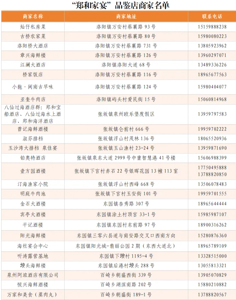 这份「郑和家宴品鉴店」清单已备好,26家门店遍布各乡镇,随便走进一家,都是地道的海丝风味。