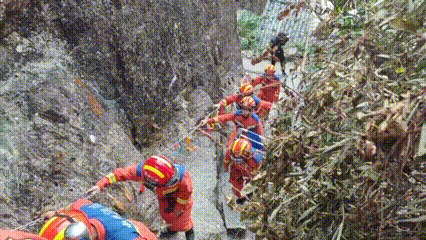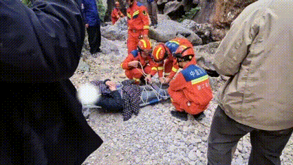 伤者被小心固定在担架上,一组人员轮流抬运担架,其余队员前方开路、后方防护。在超过60度的陡坡边缘,他们用身体筑起一道“移动护栏”,借助绳索系统缓缓下行。