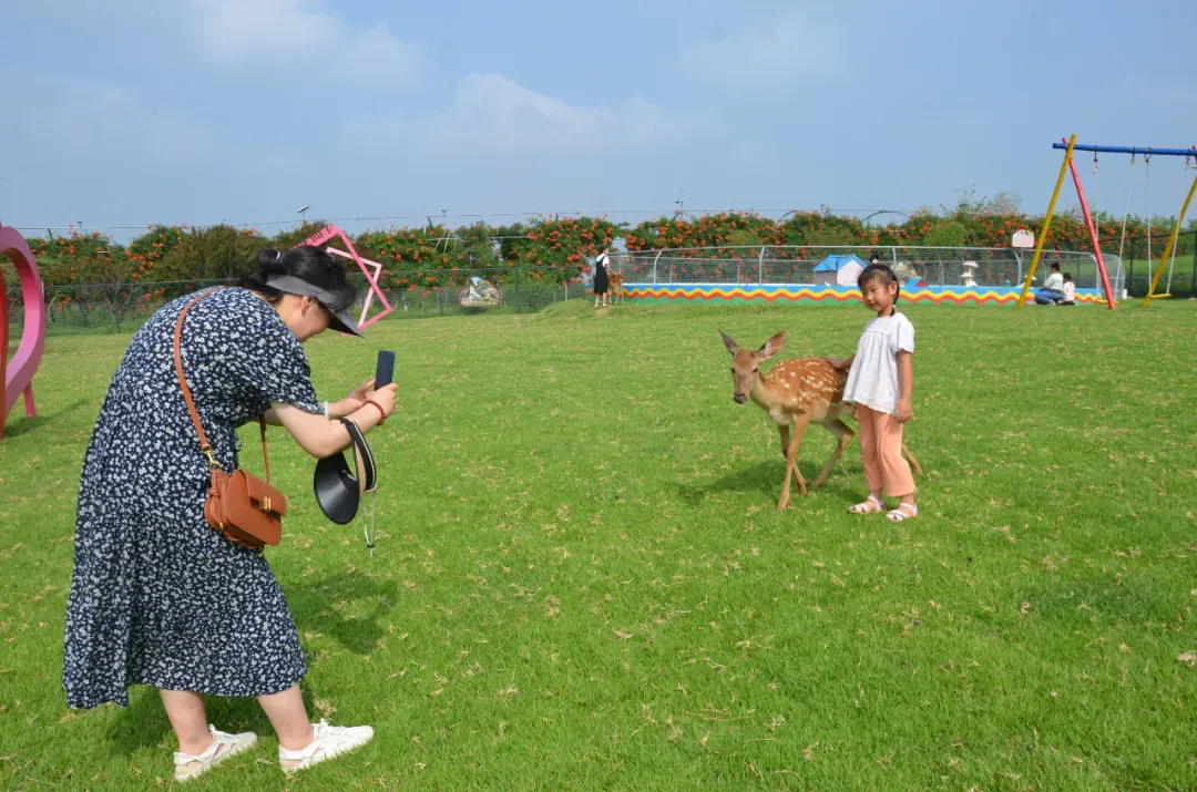 青山牧场绿草如茵、风景如画,这里饲养着一群可爱的梅花鹿,它们喜欢与游客互动,粘人的小鹿眨着大眼睛卖萌,通过抚摸、喂食可以感受到它们的超强治愈力,瞬间被萌化了。