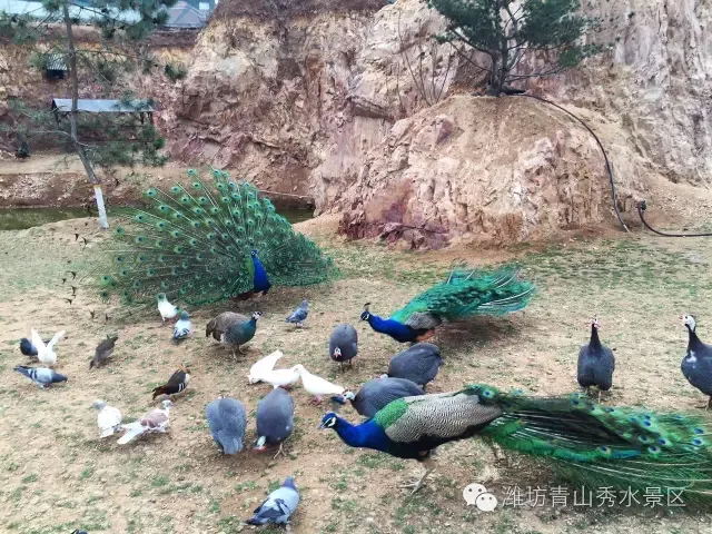 青山秀水景区充分利用矿坑自成空间的特征,高标准地建设了独一无二的特色百鸟园。目前,“鸟语花香”共散养各种鸟类20种,1300余只。在这里您可以尽情欣赏五彩斑斓的珍奇鸟类,聆听悦耳的鸟鸣,更可以体验到亲手喂鸟的乐趣。
