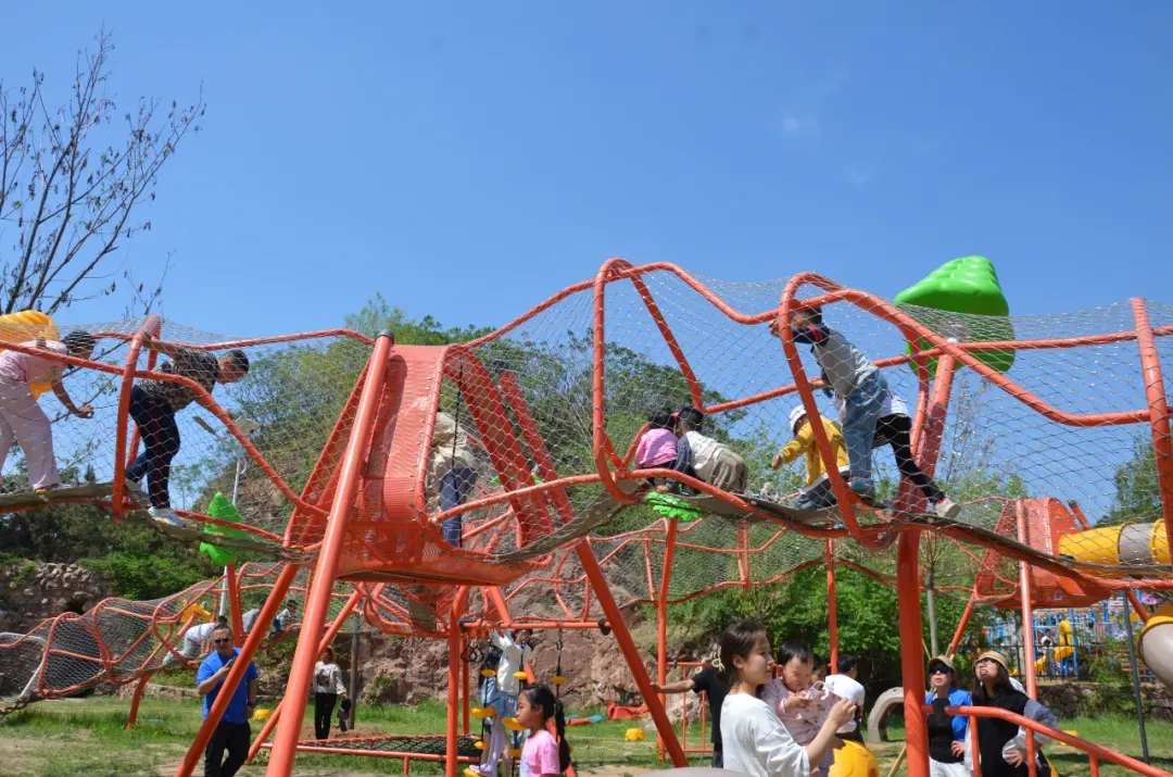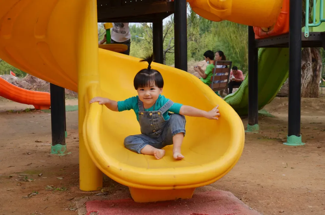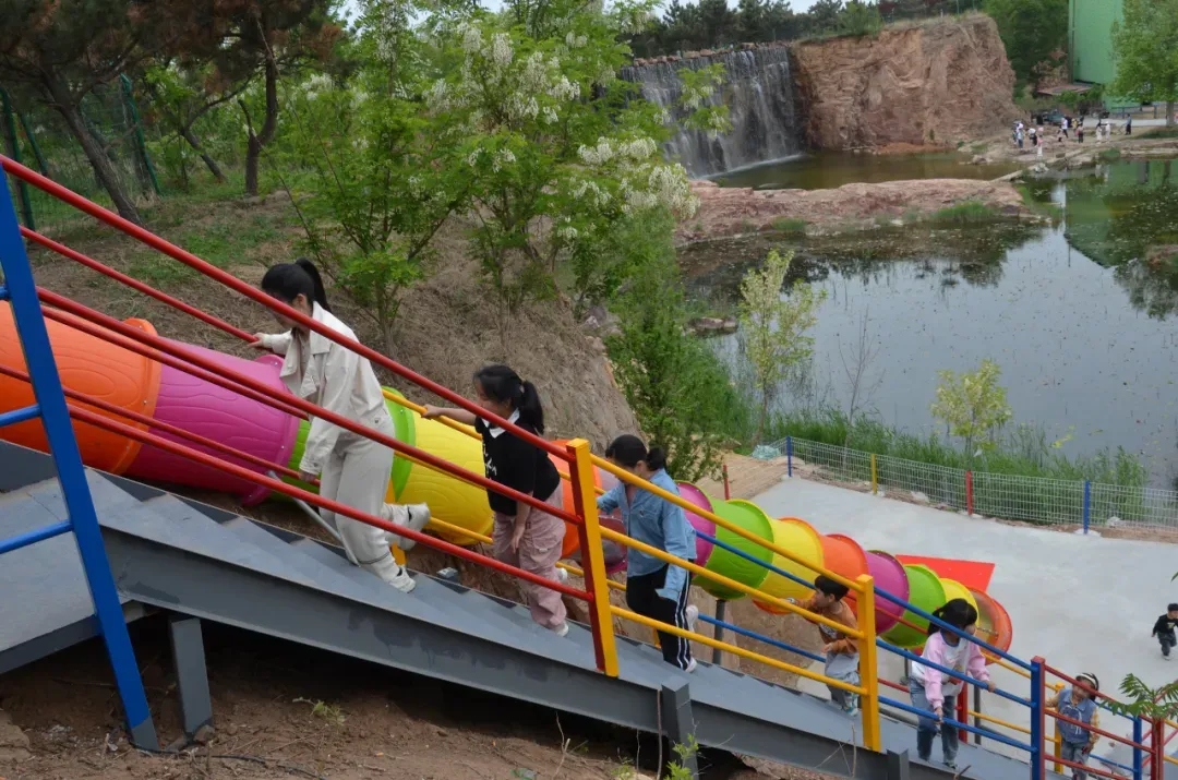 儿童乐园、时空穿梭由大大小小十几部滑梯组合,让每个孩子都流连忘返。戏水池内养着颜色丰富的鱼类,池子周围由多个压水井环绕,小朋友们在这里体验压水井的乐趣。