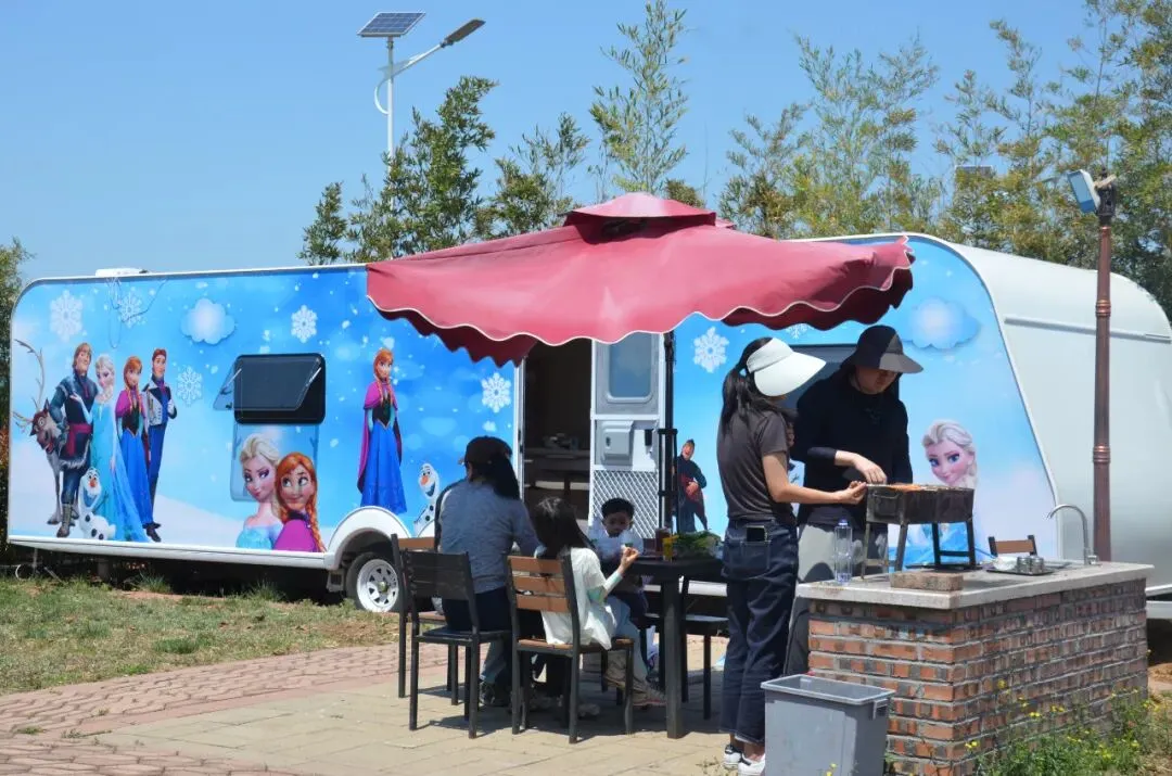 青山秀水风光秀美,环境宜人,是人们远离喧嚣、亲近自然、放松身心的好地方。如今随着人们对自驾游、露营旅游的热爱,青山秀水景区充分利用良好的生态自然环境,高标准建设了青山房车露营地。该房车由金宝旅游装备公司自主研发设计而成,内部配套设施齐全,环境舒适优雅,可满足游客的一切居住需求。房车营地配备有烧烤场地和篝火广场,住着房车,吃着烧烤,赏着美景,让你忘记所有压力和烦恼。