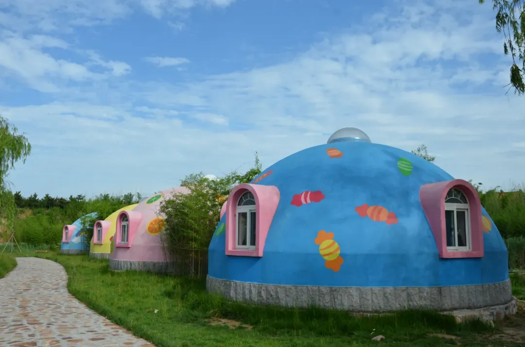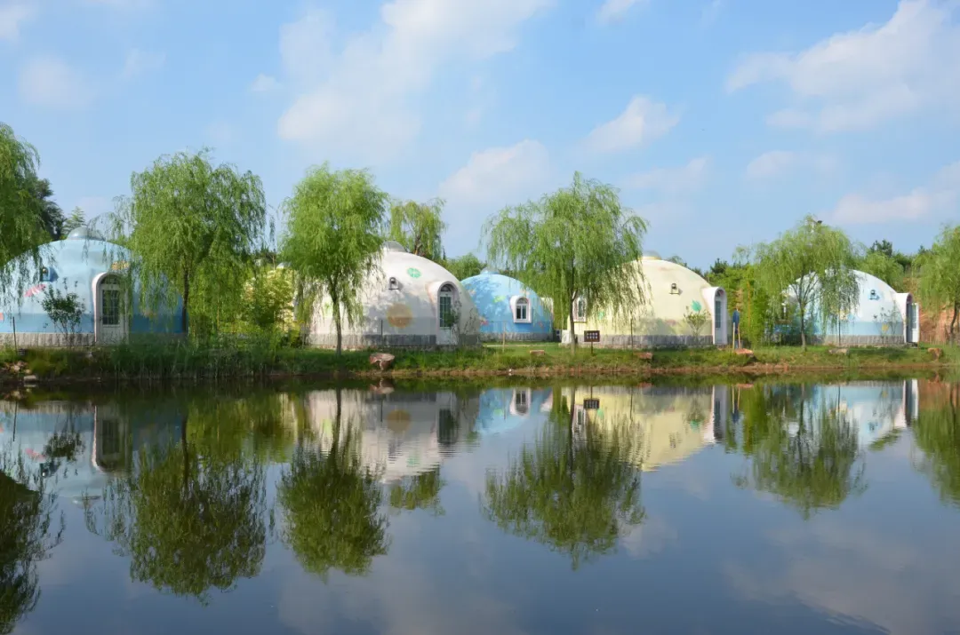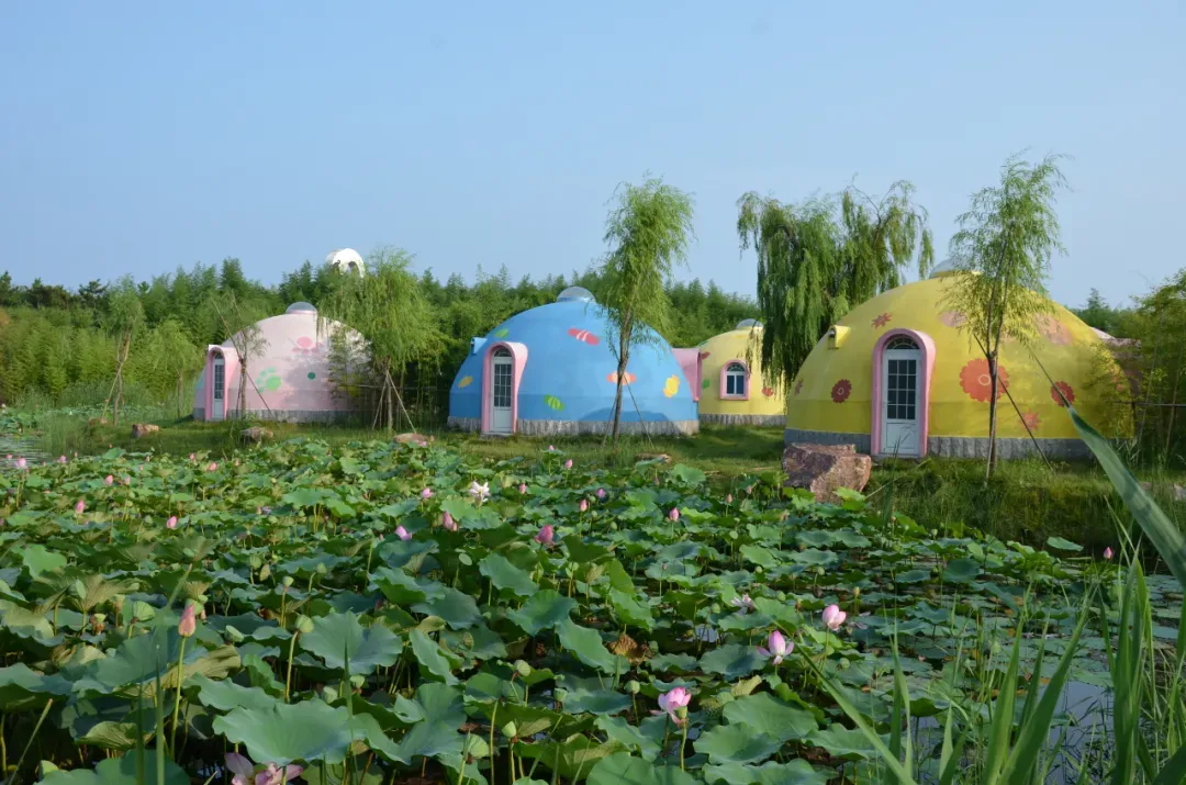 梦幻之星营地——坐落于景区的镇山之宝青山柱的东侧,一个个半球状的房屋,外观独特新颖,内部设施齐全,屋顶的圆形玻璃能在夜里观赏星空。营地周围环绕着荷花池,打开窗户就能看到美丽的景色,沉浸在远离都市尘嚣的浪漫氛围中,在这里享受舒适放松的生活。