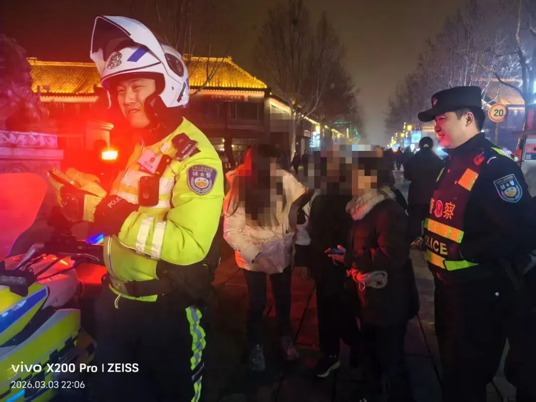 昨晚 聊城各景区 人头攒动、热闹非凡 在熙攘的人流中 难免有些“粗心”爸妈 和“迷糊”宝宝 一不留神就走失、走散 好在 有一群执勤民辅警 穿梭在人群中 问询、喊话、寻找 …… 忙碌了一晚上