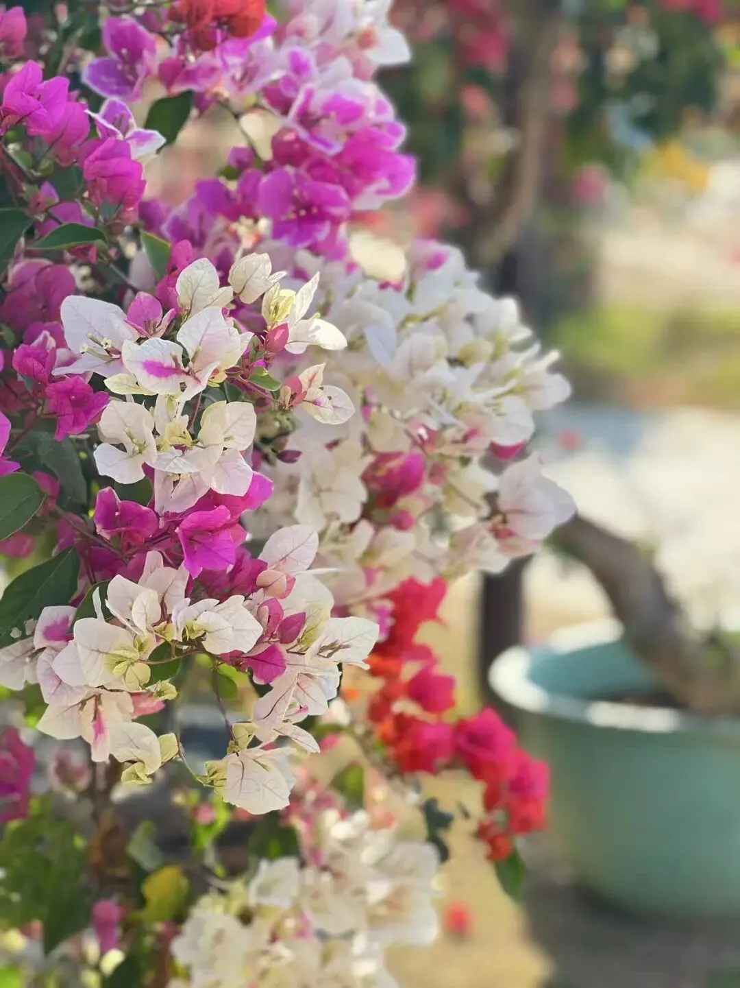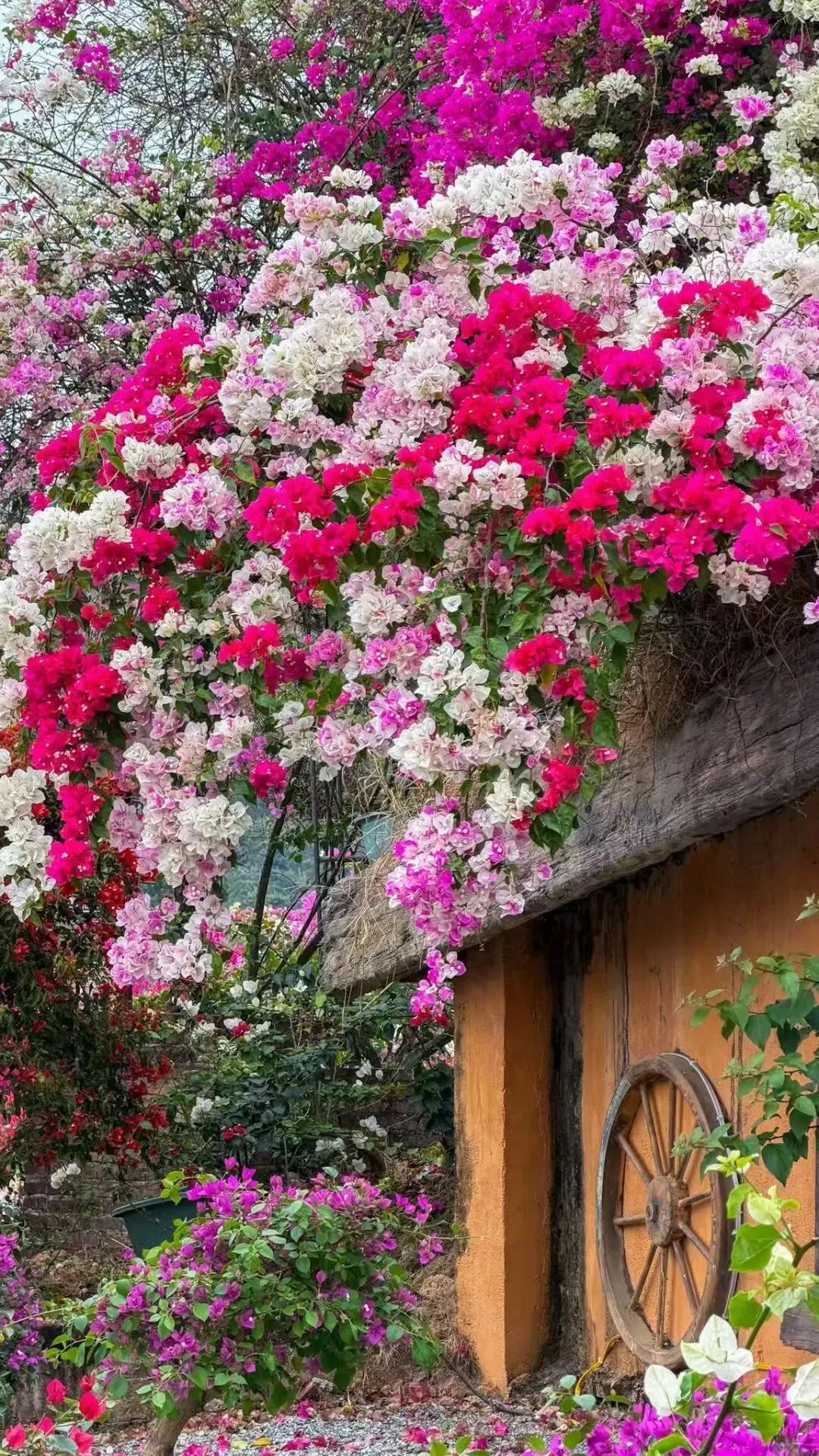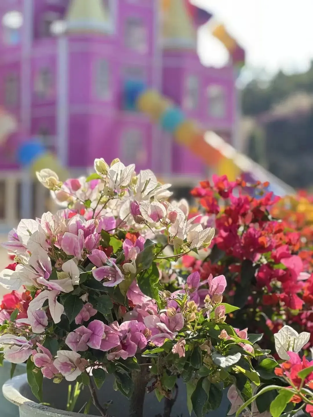 各色三角梅交织成铺天盖地的花海