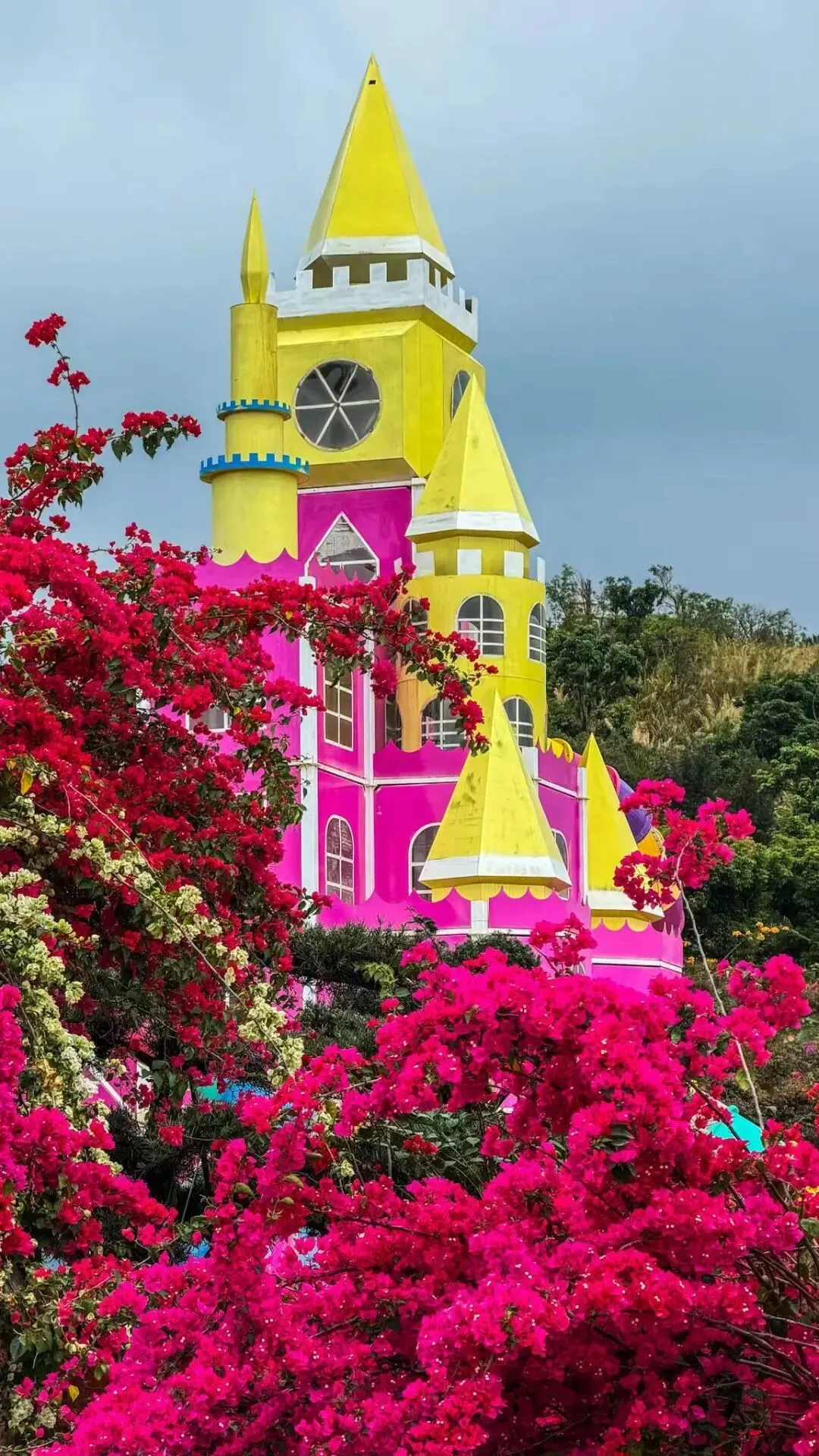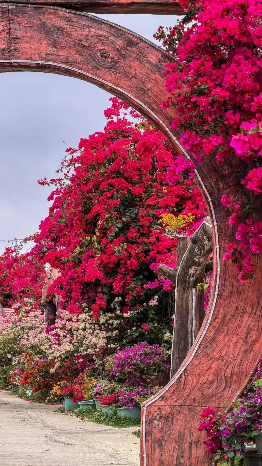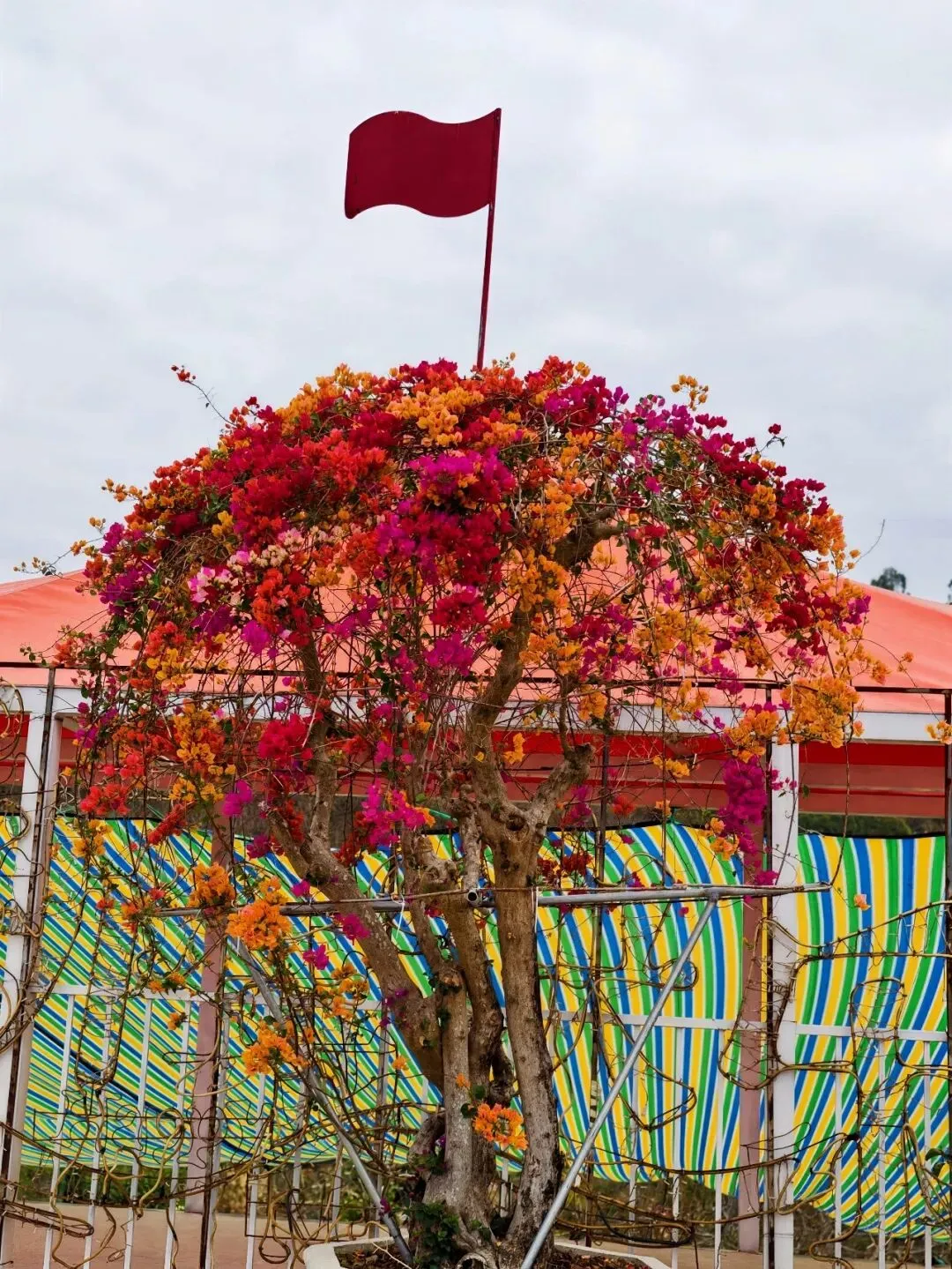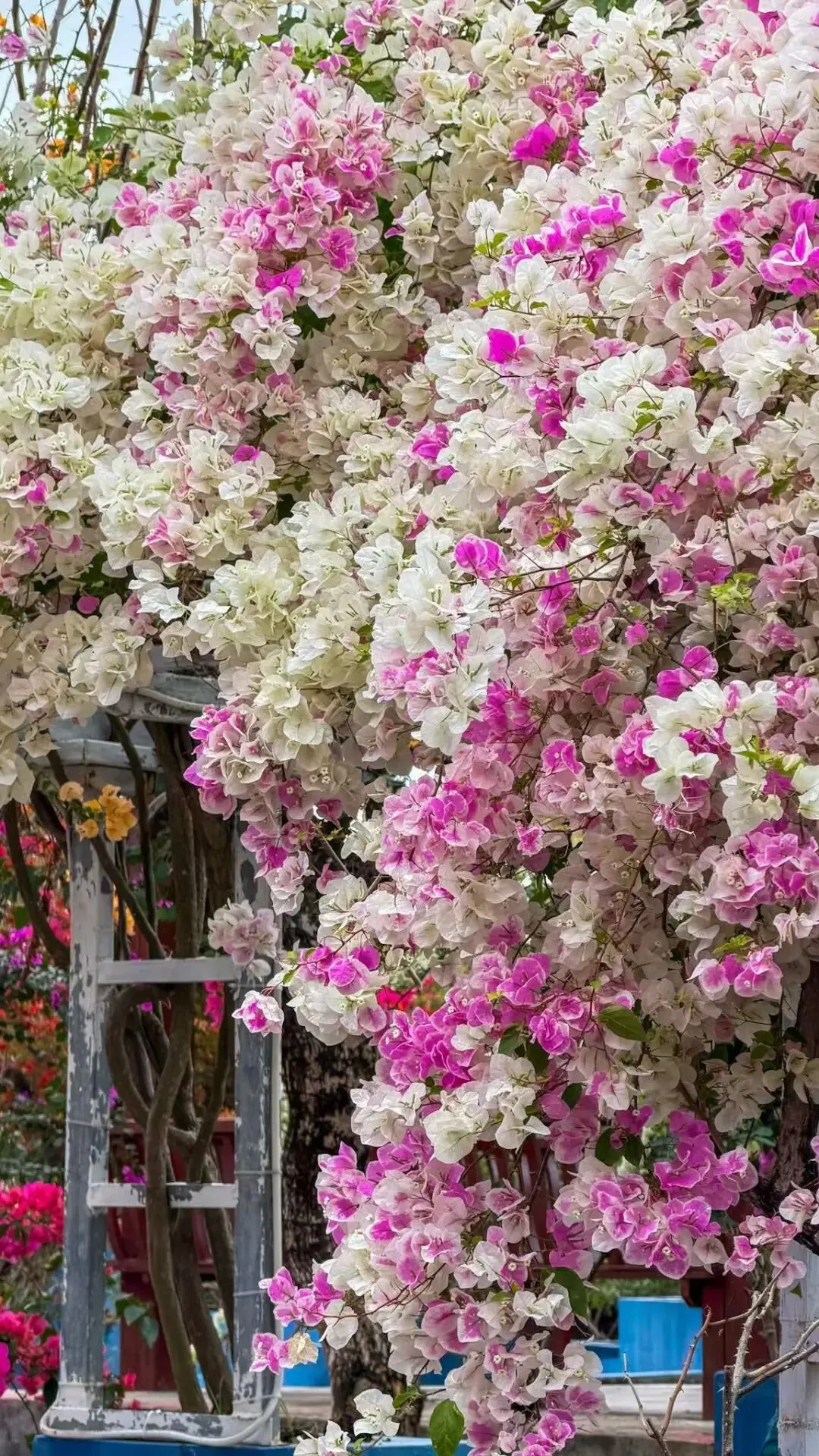 各色三角梅交织成铺天盖地的花海