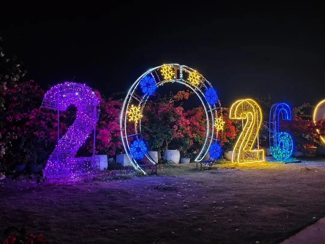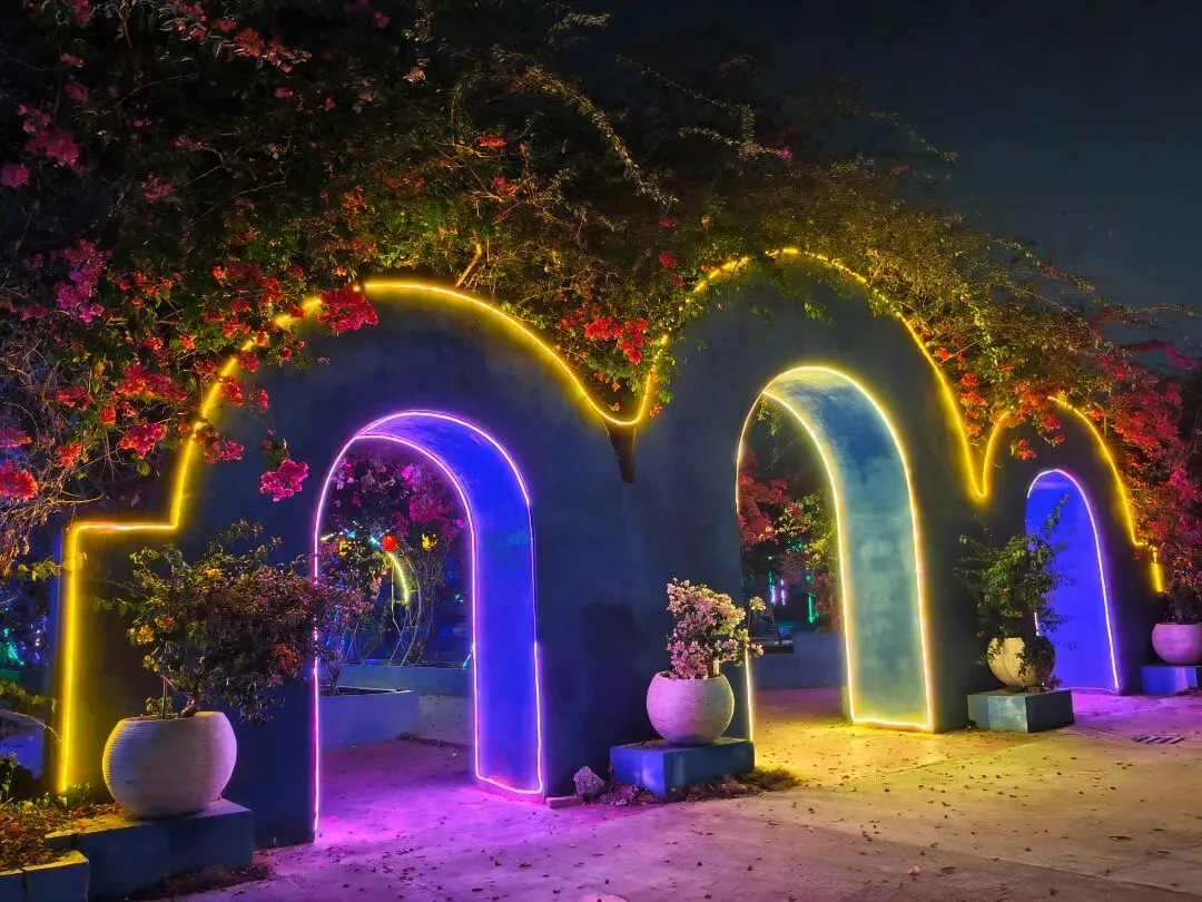 彩灯勾勒花海轮廓