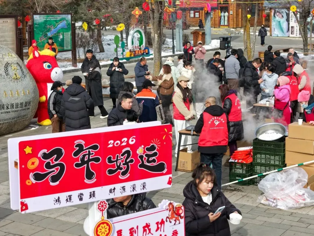 晨光启序,暖意先行。上午9时,景区入口处暖意融融,福圆品鉴会如期启幕。本次活动得到敦化雪梅食品倾情赞助,工作人员精心筹备,现场免费为市民与游客奉上软糯香甜的福圆,洁白圆润的福圆承载着团圆美满的美好寓意。同步开启的福茶品鉴区,茶香氤氲、雅致静谧,游客们在袅袅茶香中舒缓身心,在欢声笑语中感受节日温情,让整个景区都萦绕着暖意融融、年味绵长的浓厚氛围。