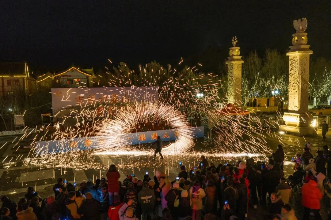 夜幕降临,华灯初上,整场活动迎来高潮。17:30,元宵电音晚会、梦幻灯光夜游与非遗打铁花同步启幕,传统民俗与现代潮流在此碰撞交融、绽放光彩。动感潮流的电音旋律响彻园区,强劲的节奏、热烈的氛围,点燃了每一位游客的热情,将节日的喜悦推向顶峰;震撼人心的非遗打铁花凌空绽放,铁水流星、火树银花,一瞬点亮夜空,尽显千年民俗的磅礴气势;光影交织间,六鼎山化身流光溢彩的梦幻秘境,万千灯火次第绽放,一步一景、一灯一画,璀璨夺目、如梦如幻,为广大游客呈现了一场震撼人心的视听双重盛宴。