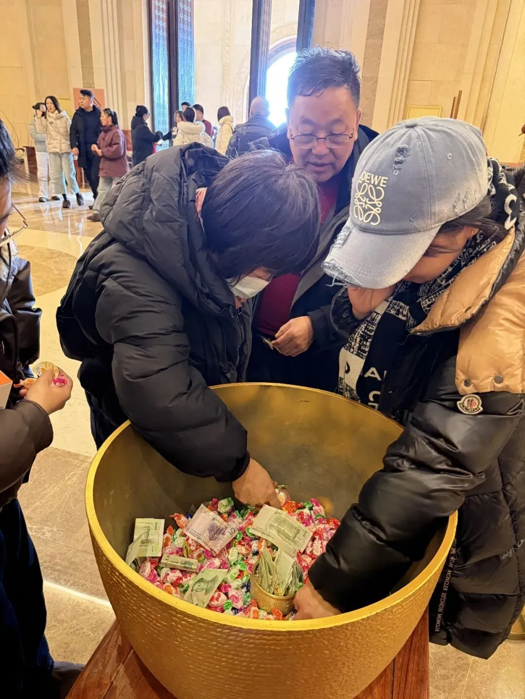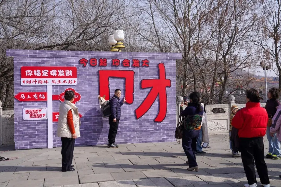 春节期间,六鼎山景区内张灯结彩,年味浓郁到极致。红灯笼点缀着景区全域,各式“福”字打卡点星罗棋布,营造出“一步一景、步步是福”的喜庆氛围。作为核心打卡阵地,“马上有福”打卡点前,萌趣小马 NPC 与游客热情互动,大家争相合影,定格“马到成功”的美好瞬间;“福财双全” 主题打卡墙前,游客们化身汉字的一部分创意摆拍,沉浸式体验新春福运;景区入口的“金玉满堂福蛋”打卡活动人气高涨,游客们手持福蛋袋拍照分享,收获新春第一份好彩头;艺术馆内的“聚宝盆纳福”打卡点暖意融融,游客分享打卡照片即可领取福礼,让纳福迎新更具趣味。