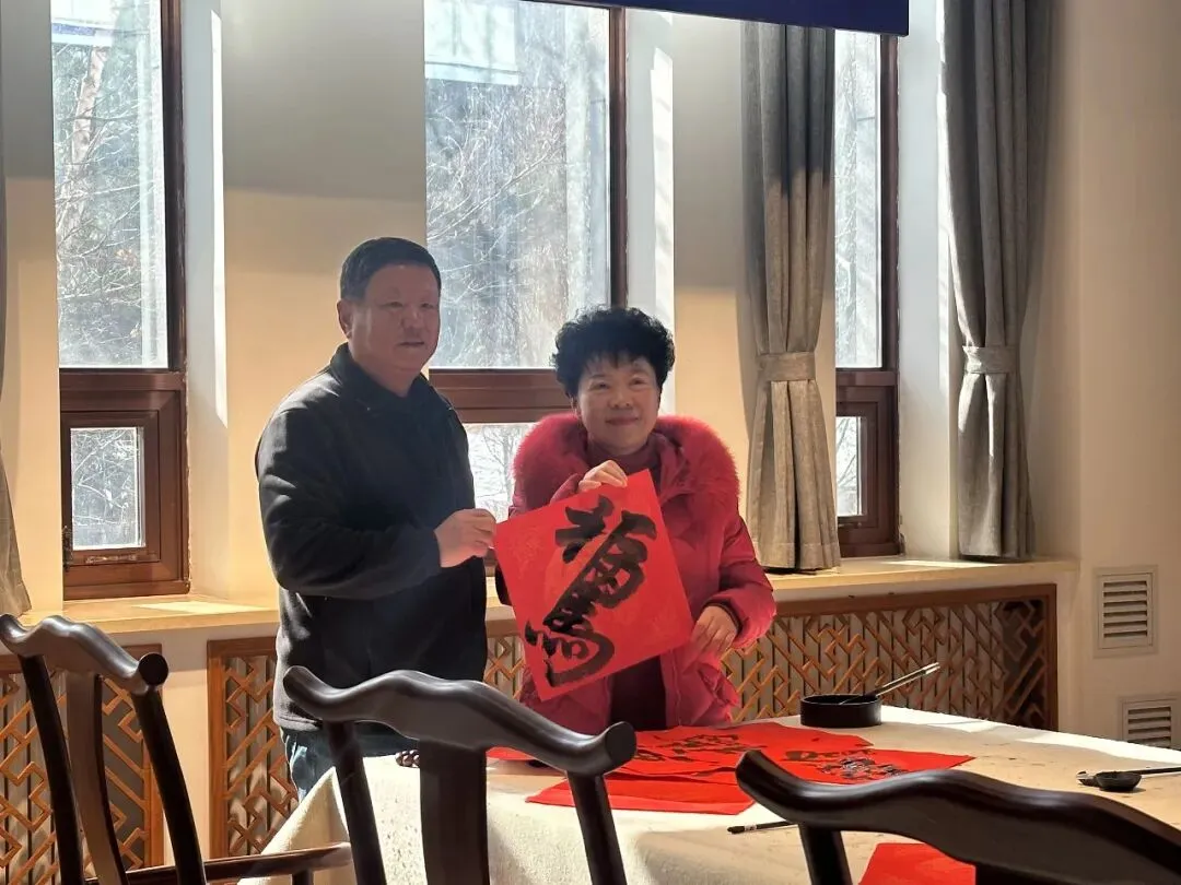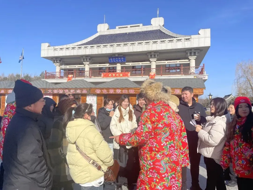 传统文化与新春趣味在此碰撞交融,演艺与体验活动精彩纷呈。演艺舞台上,灵动的民族舞蹈、热闹的东北大秧歌轮番登场,传统民俗风情与现代表达巧妙融合。张笑天文学馆内,新春书法文化课堂翰墨飘香,游客们挥毫泼墨书写“福”字与吉祥语句,在一笔一画间感受中华优秀传统文化的魅力。清祖文化馆外,趣味小游戏让游客在互动中收获喜乐,解锁新春游玩新体验。新春集市里,特色美食香气四溢,非遗手工艺品琳琅满目。