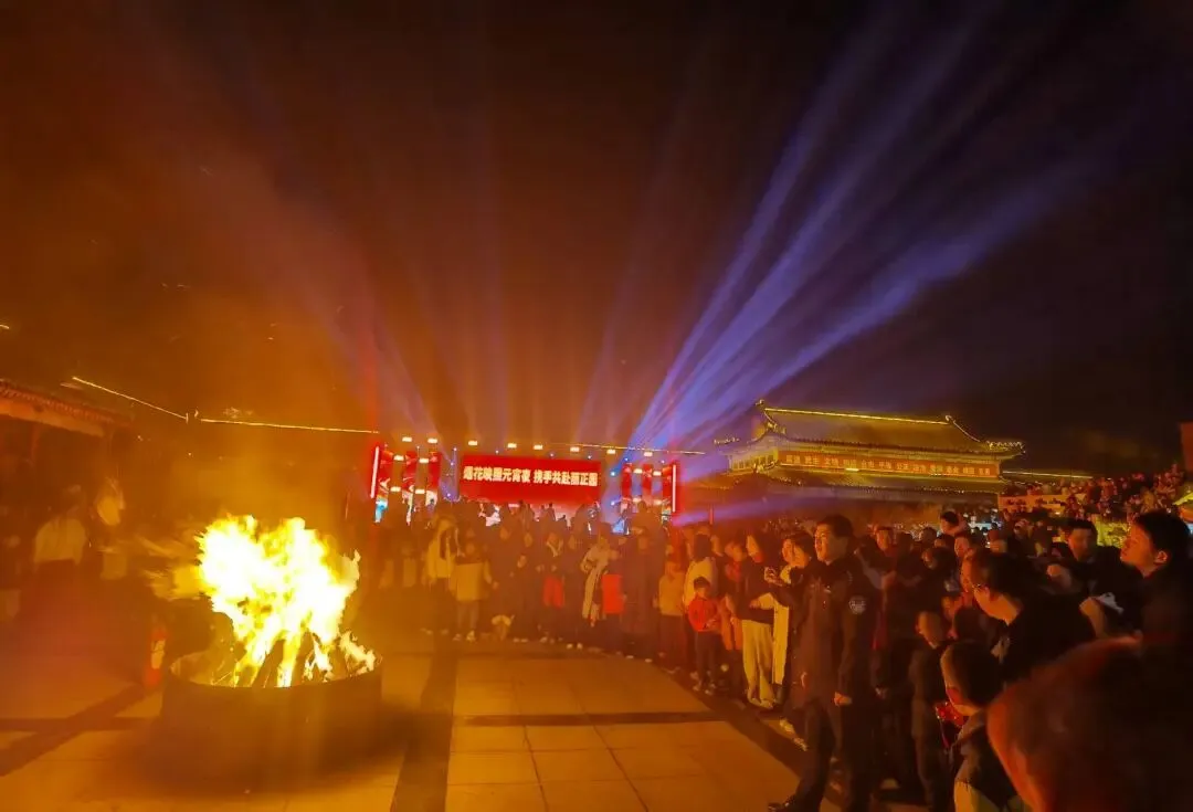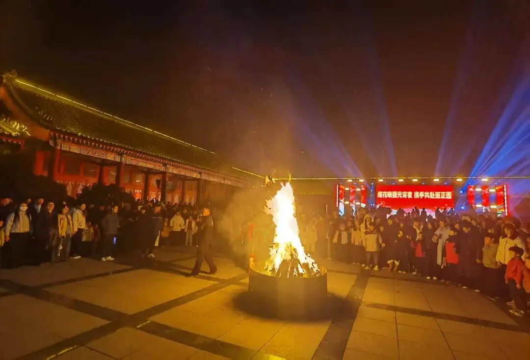 夜幕之下,熊熊篝火热烈燃起,温暖的火光映照着一张张笑脸。大家手拉手、心连心,围着篝火尽情欢跳,陌生与距离在此刻消散,只剩下彼此的欢声笑语,在景区里久久回荡,定格下最温暖、最治愈的团圆瞬间。